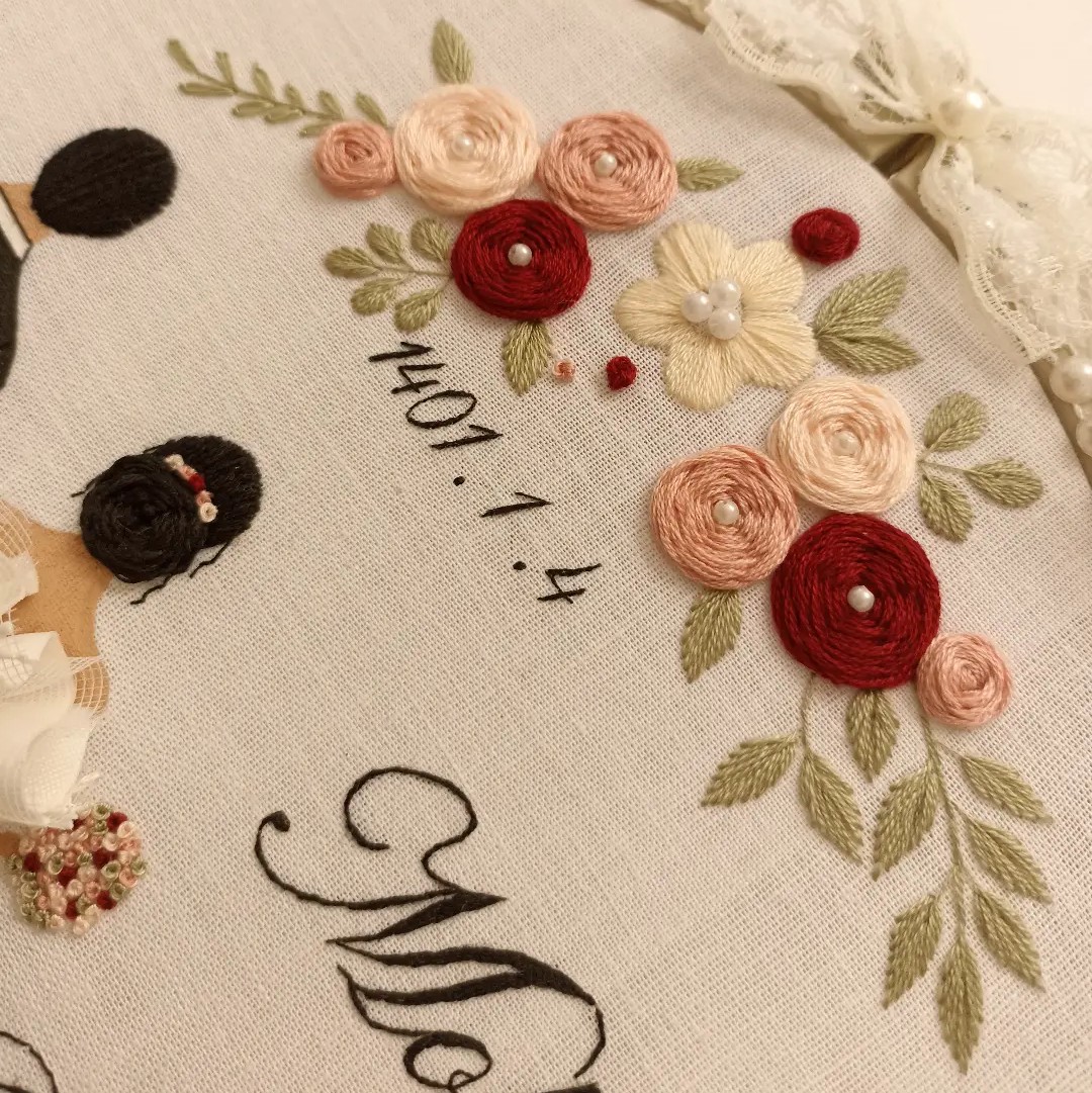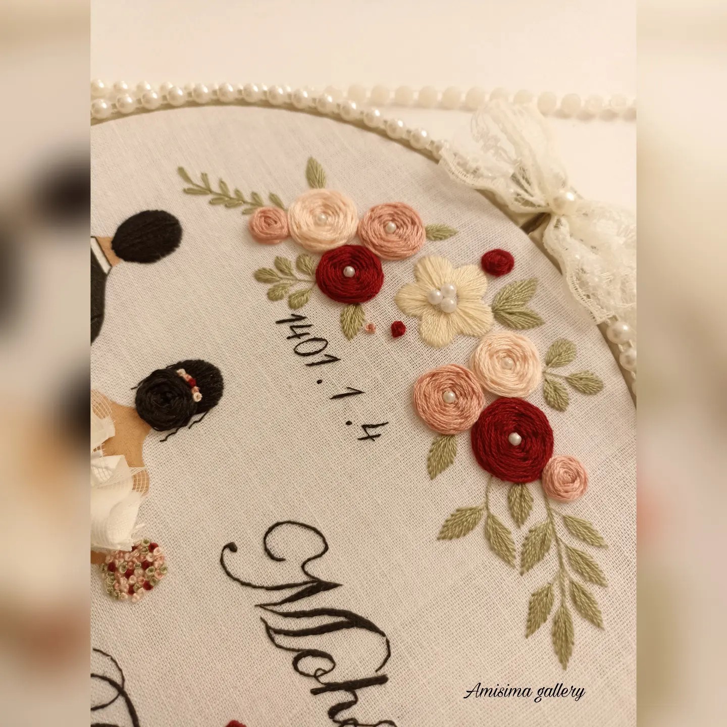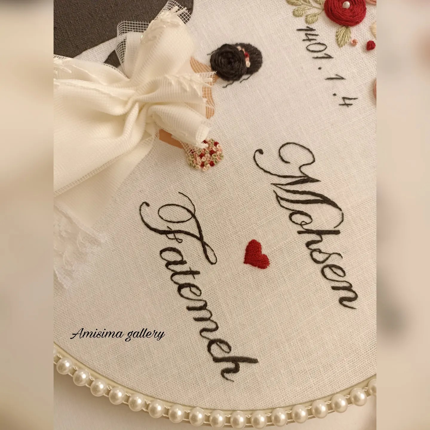 دیوارکوب عروس و داماد یادبود سالگرد ازدواج گلدوزی شده با دست کد 080 مبلمونسرا مدل 259845