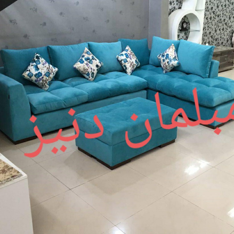 مبل ال پفکی ۶نفره با پاف تهیه شده از نشیمن الیاف ویسکوز کره چوب روس پارچه مازراتی بسیار شیک و زیبا نرم و راحت ارسال به تمام نقاط کشور