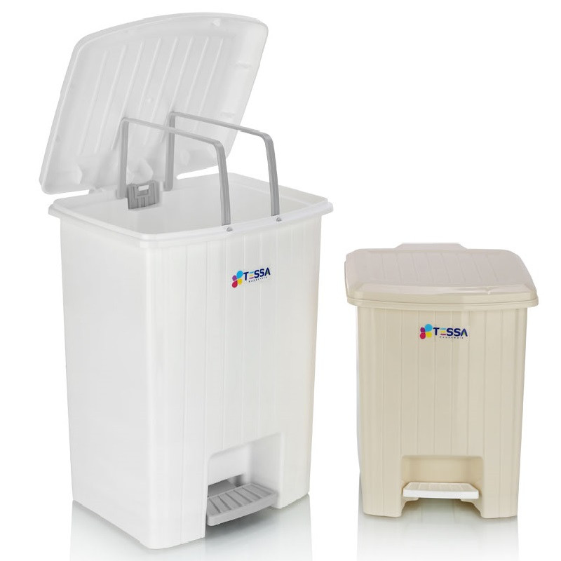 سطل پدالی زمرد تسا سایز 4 دارای ارتفاع 44 سانت می باشد دو دسته زیر درب بالایی جهت نگهداری کیسه زباله در آن تعبیه شده است پدال به خوبی جایگذاری شده و استفاده از آن راحت می باشد