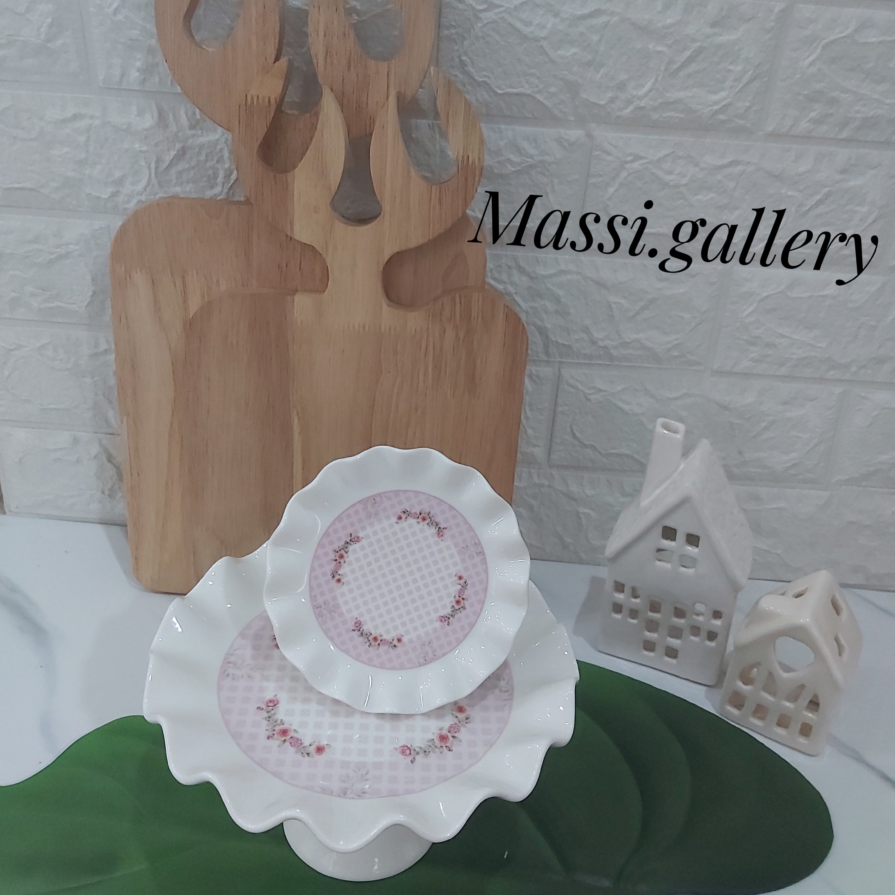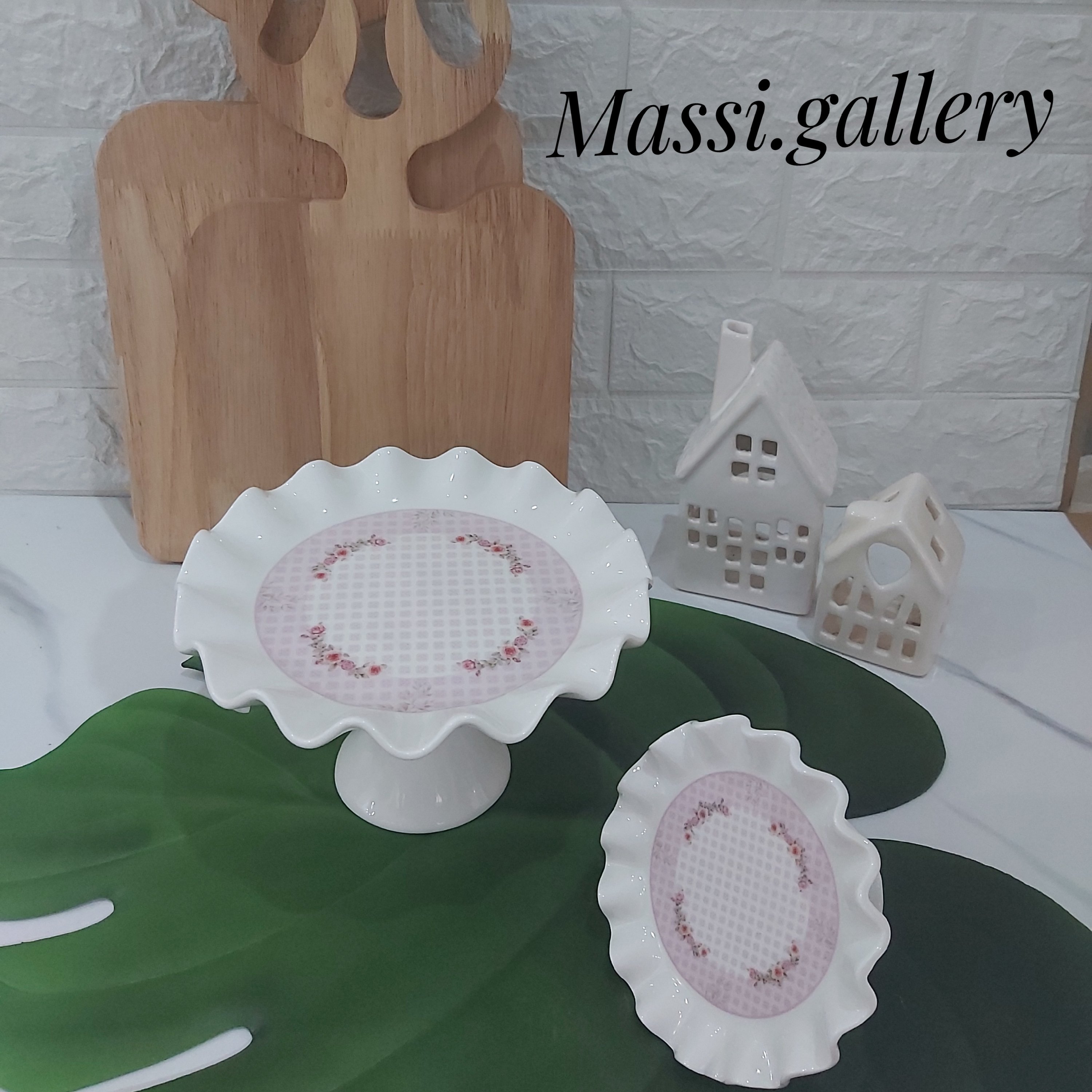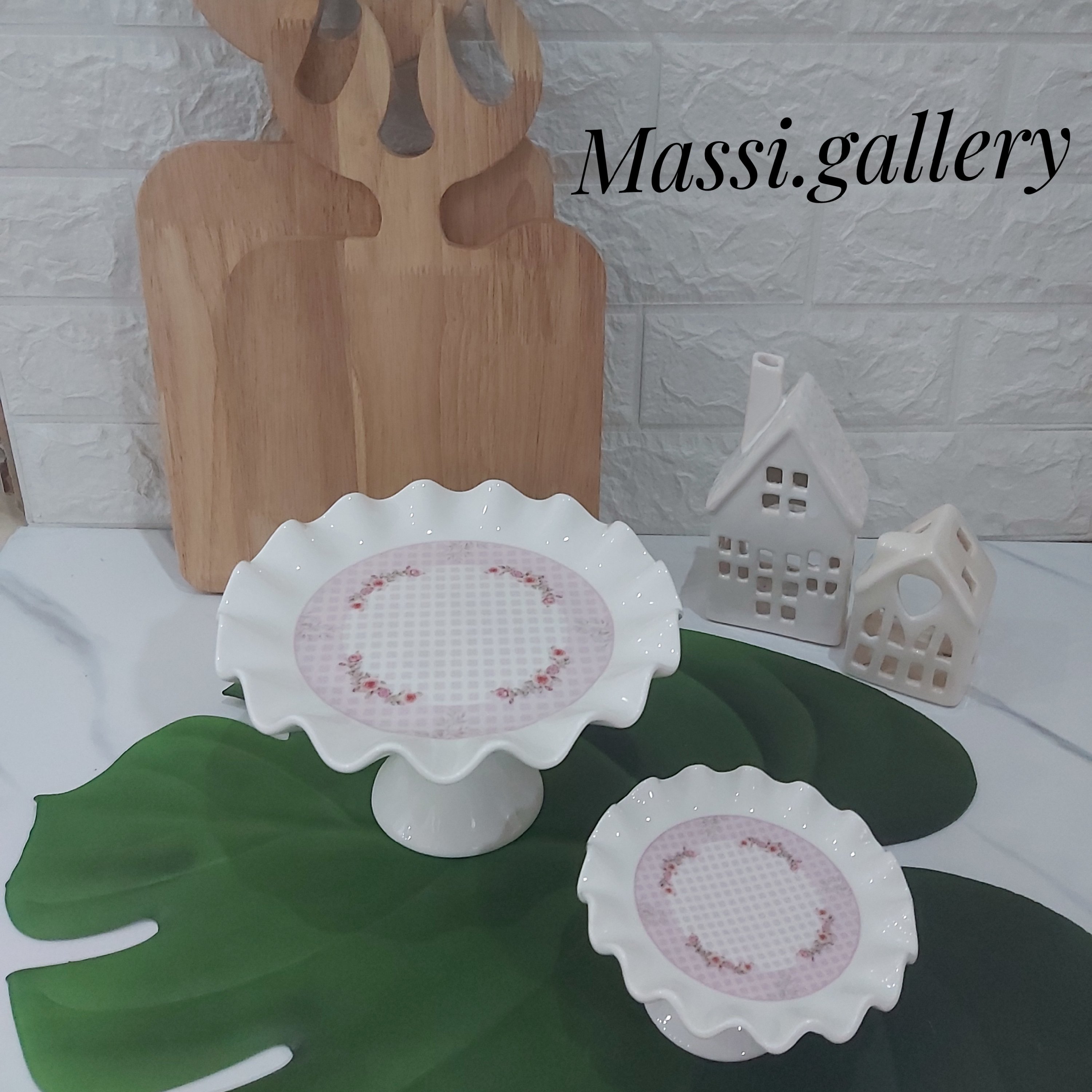 کیک خوری پایه دار آنجلا جنس:چینی بن چاینا ابعاد : ۱۶ × ۲۰ سانتی متر خرماخوری پایه دار آنجلا همین طرح موجود است ابعاد : ۱۰ × ۱۲ سانتی متر