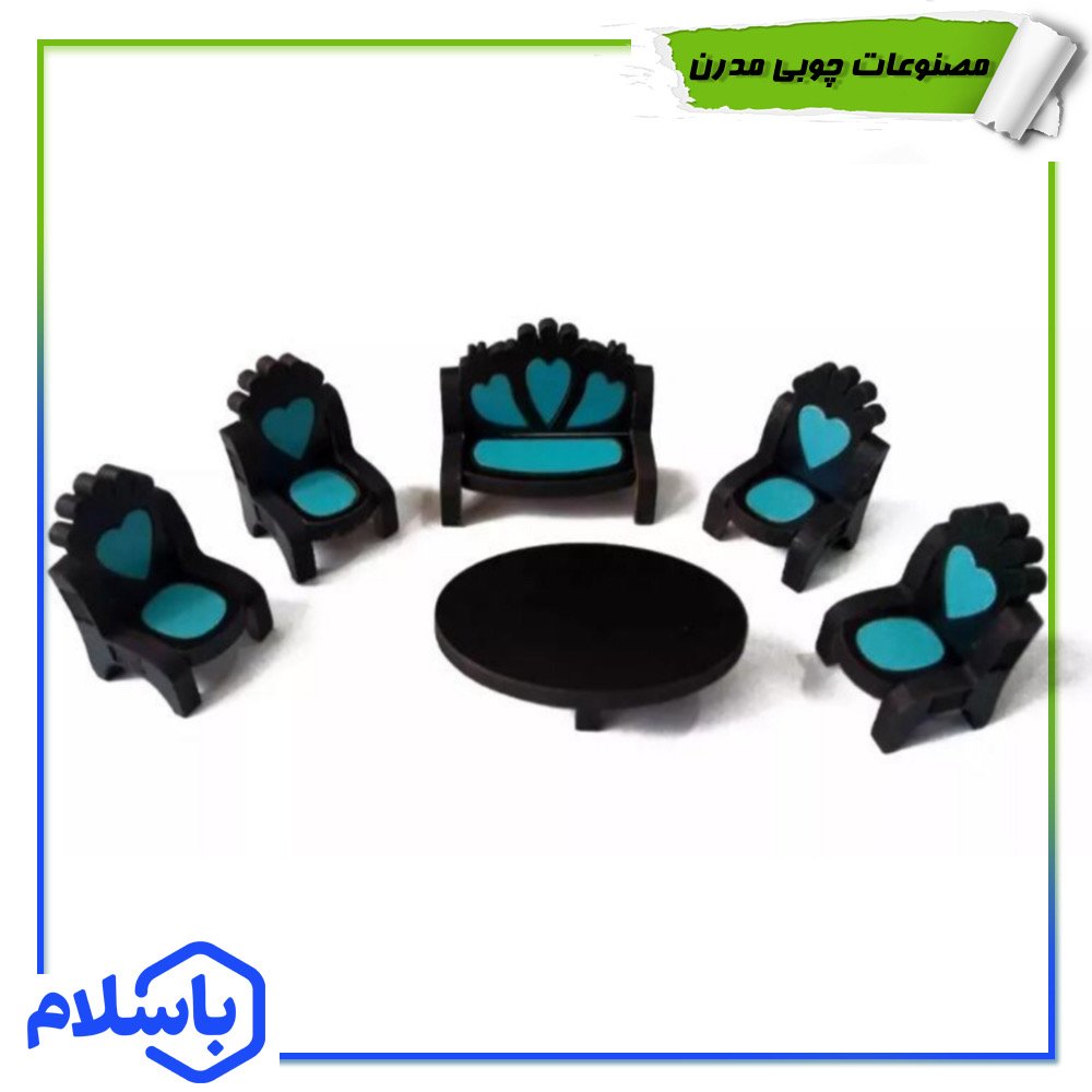 مبلمان هفت نفره مینیاتوری 2 سانتی چوبی در رنگ های متنوع مبلمونسرا مدل 212108