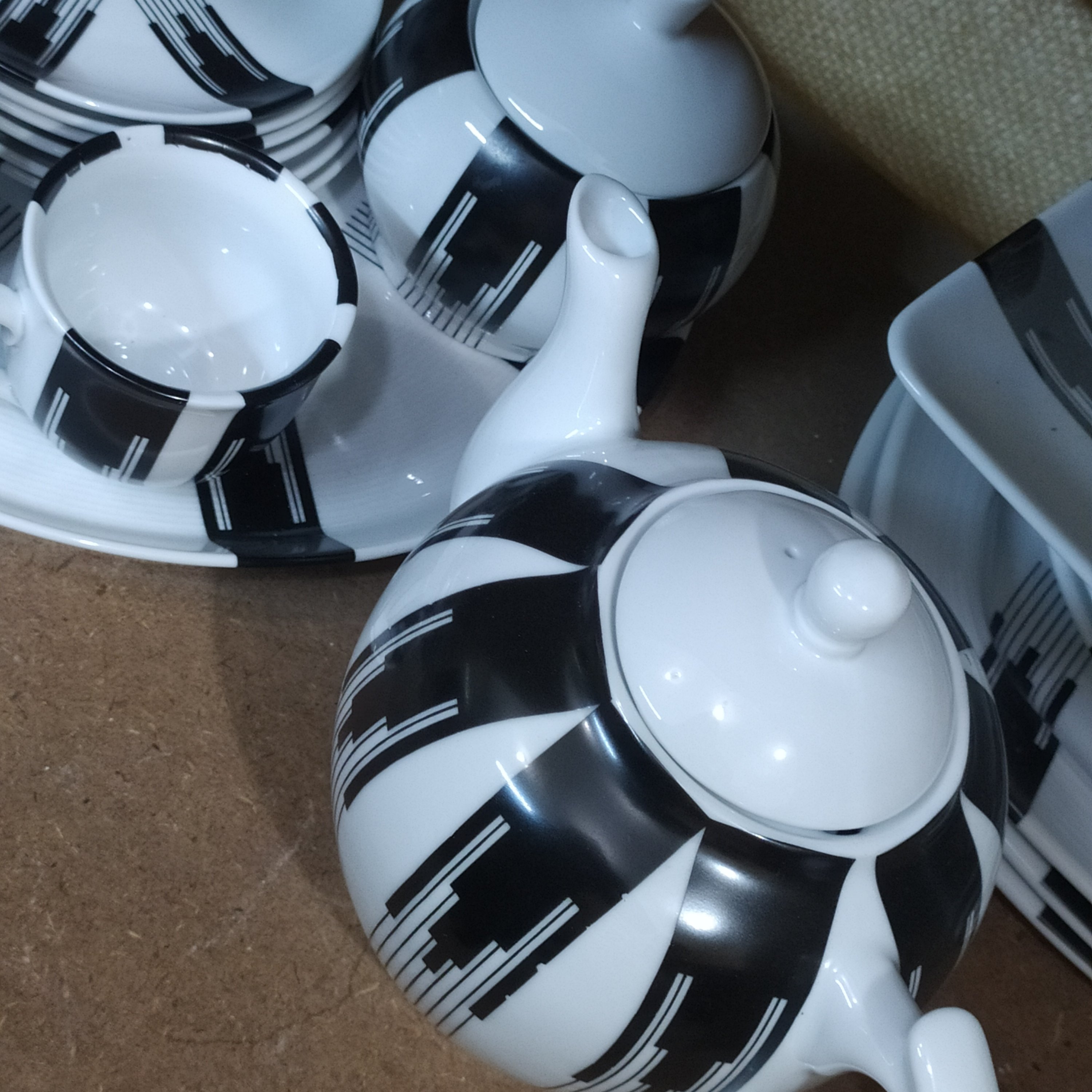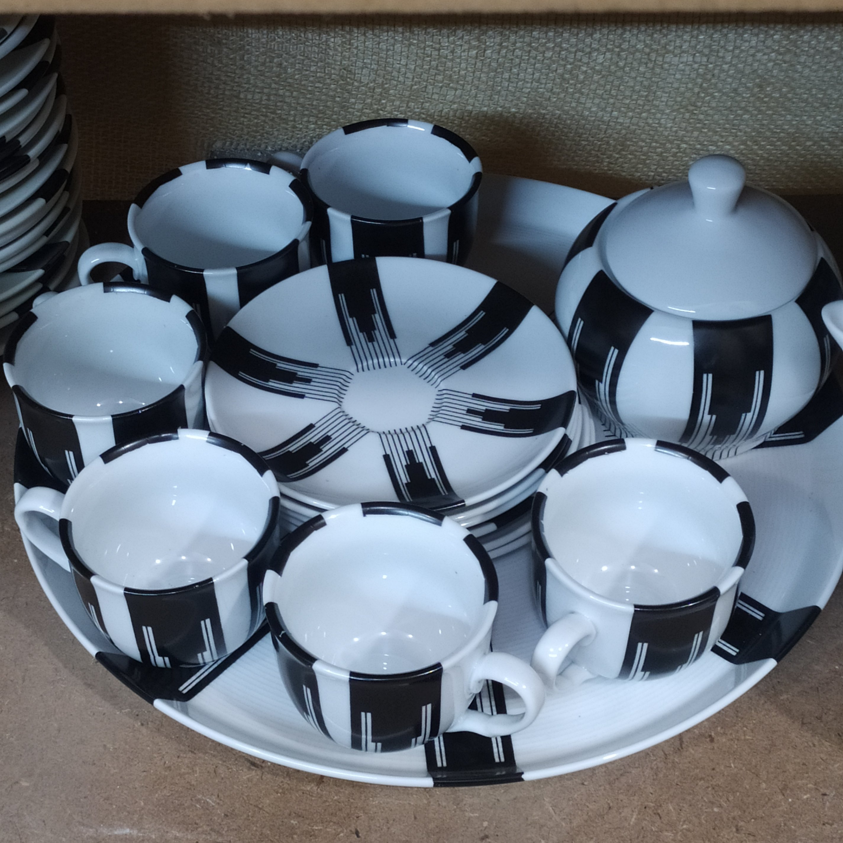 سرویس 15پارچه چینی با کیفیت تقدیس و نقش چوقا ماندگار و کوره ای قابل شستشو یک قوری . یک سینی. یک قندون . شش عدد فنجون و شش عدد زیره