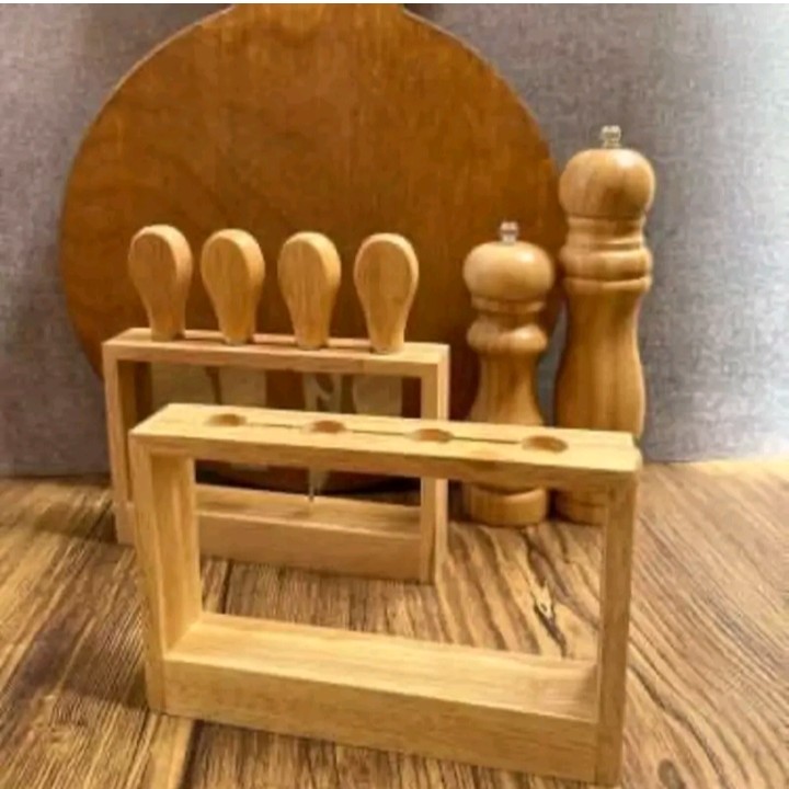 چاقو چنگال و استند صبحانه خوری چوبی مناسب برای سرو صبحانه و عصرانه به همراه 4 عدد چاقو و چنگال