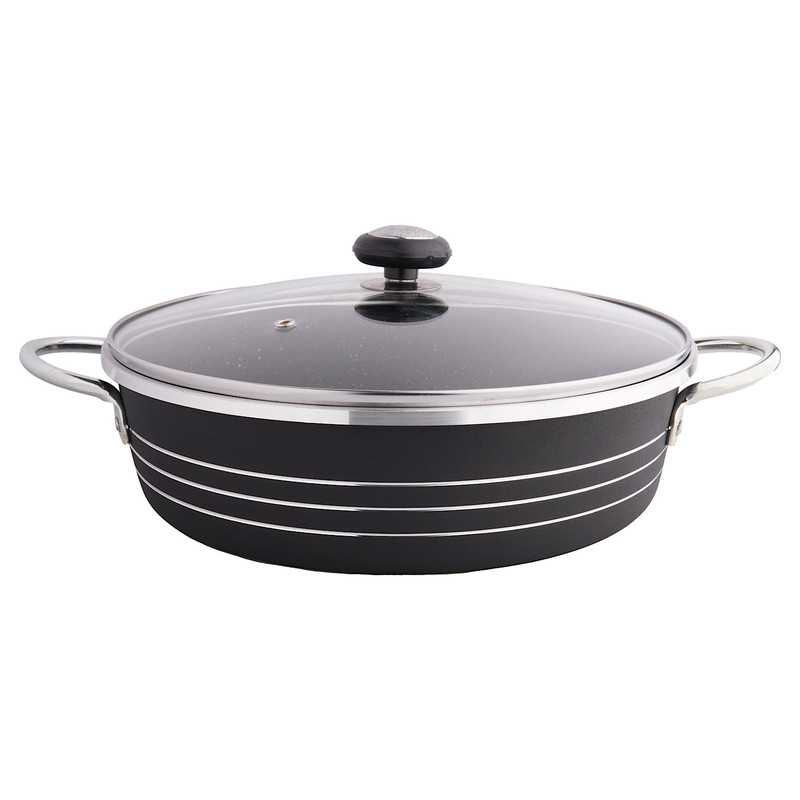 تابه سایز ۳۲ مدل گلدانی شامل یک عدد تابه سایز ۳۲ به همراه درب و دستگیره درب می باشد که جنس پوشش داخلی آن گرانیت سه لایه و جنس دسته های آن فلزی می باشد و از مرغوب ترین مواد اولیه تهیه شده است