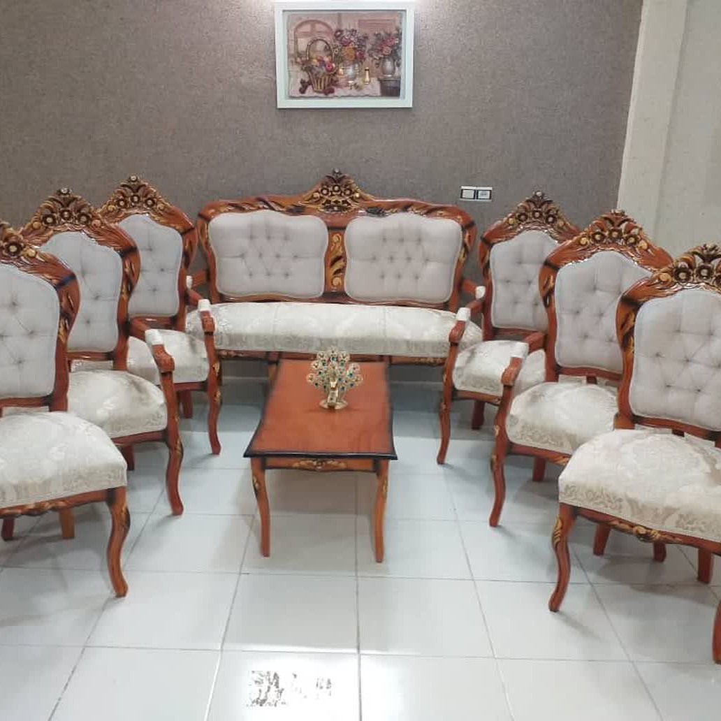 مبل 9نفره تمام چوب راش یاگردو پارچه شانل یزد کف فنر ضمانت 5ساله طرح متنوع وفوق العاده ناهارخوری ست هم میزنیم