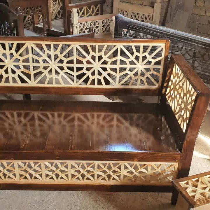 •••مجموعه تولیدی ترنج با دو دهه سابقه ••• تخت طرح شیوا گره شمسه 2 و 3 نفره دونفره 120 در 60 ،3 نفره160 در 60 چوب روس رنگ پلی استر تنوع رنگ و زیبا چوب با کیفیت و مرغوب استحکام بالا طراحی و ساخت انواع تخت و مبلمان سنتی در ابعاد و رنگ بندی های مختلف تولید انواع محصولات چوبی کلبه چوبی میز تلوزیون میز تلفن جلومبلی و عسلی دراور چوبی و....