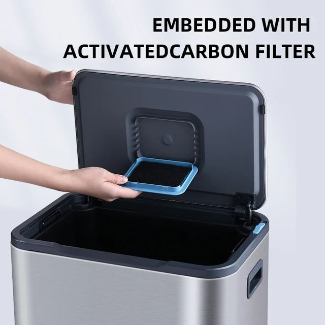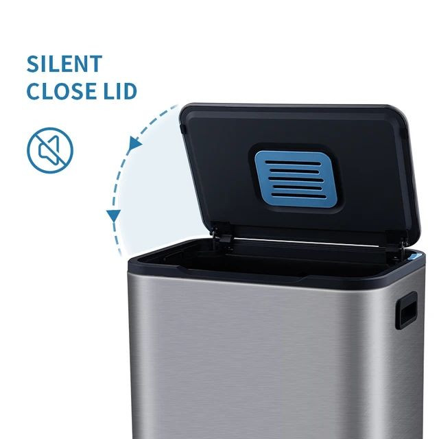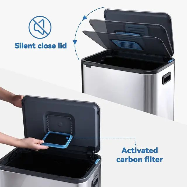 این مدل سطل زباله از کیفیت ساخت بسیار بالایی برخوردار است. درب آن آرام بند بوده و فرم این مدل سطل زباله زیبایی منحصر به فردی به محیط اشپزخانه شما می دهد. روی درب سطل قسمتی برای بوگیر سطل بوده که یک عدد ذغال مخصوص به آن در سطل قرار داده شده است تا بوی نامطبوع را بگیرد. سطل داخلی این مدل یک دسته بسیار زیبا برای جابجایی راحت تر هم قرار داده شده است.