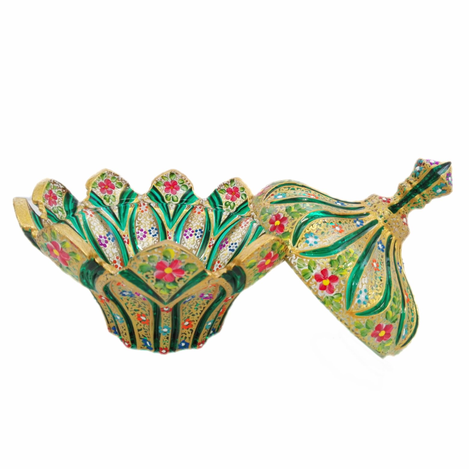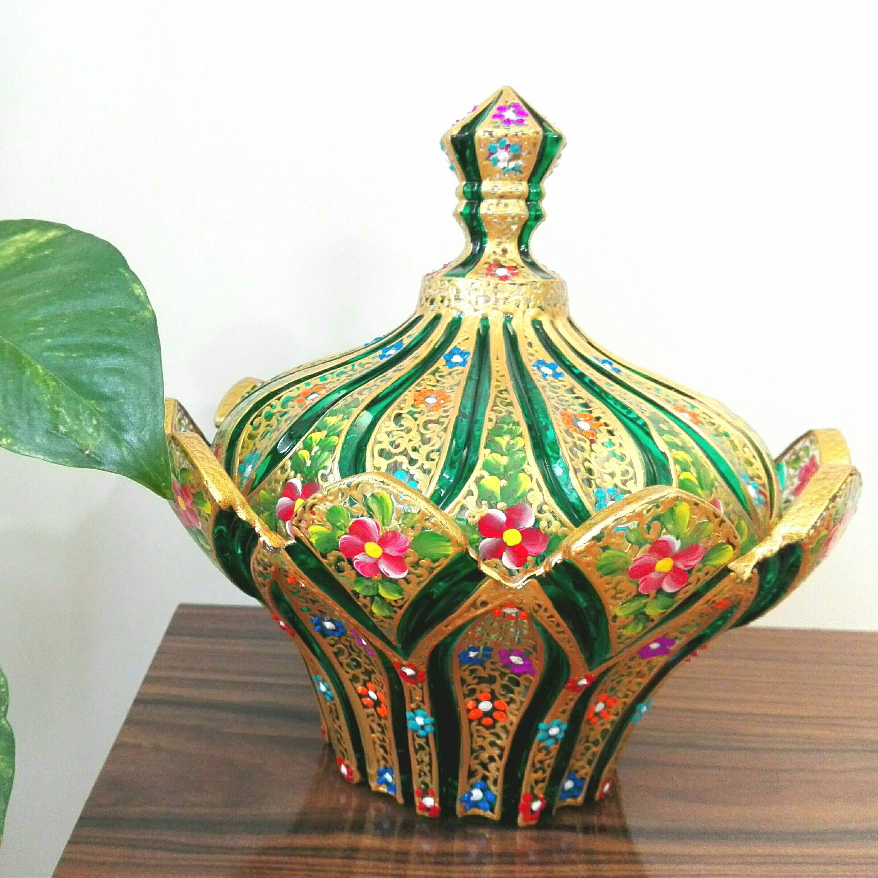 شکلات خوری بلور نقاشی شده مدل گل آذین رنگ سبز مبلمونسرا مدل 296507