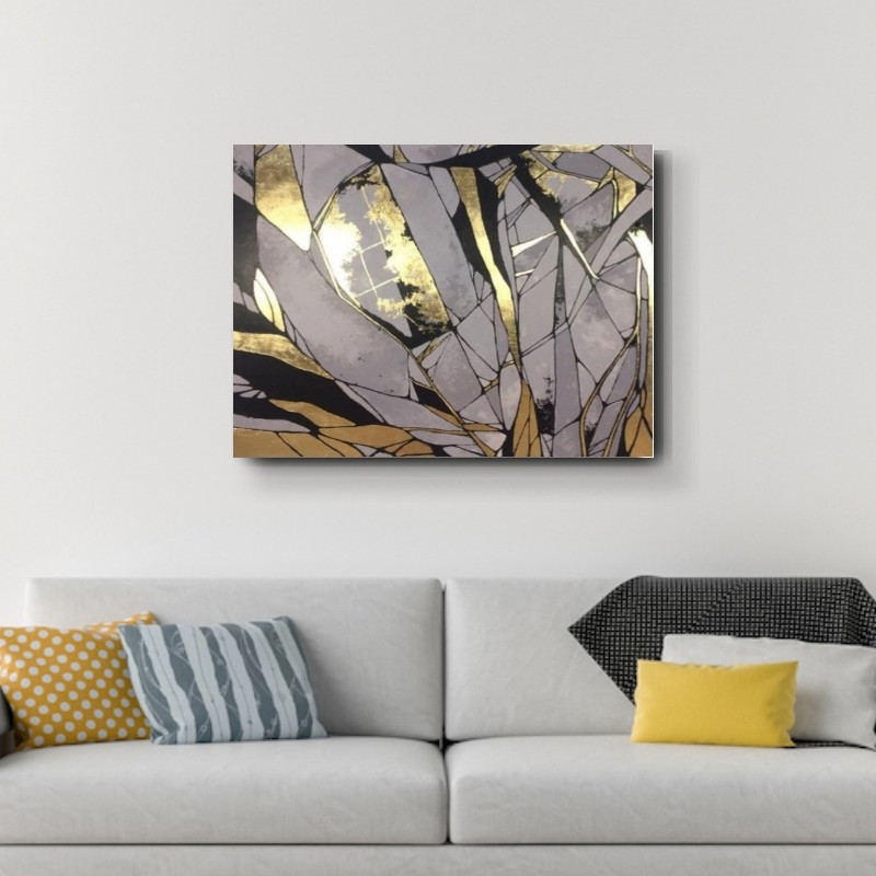 تابلو هندسی مدرن طلایی طوسی 60 در80 مبلمونسرا مدل 267177