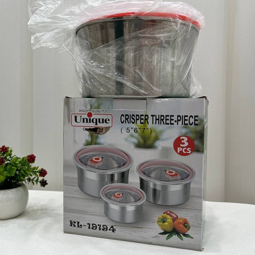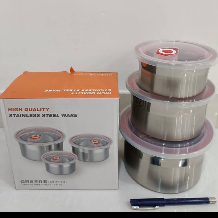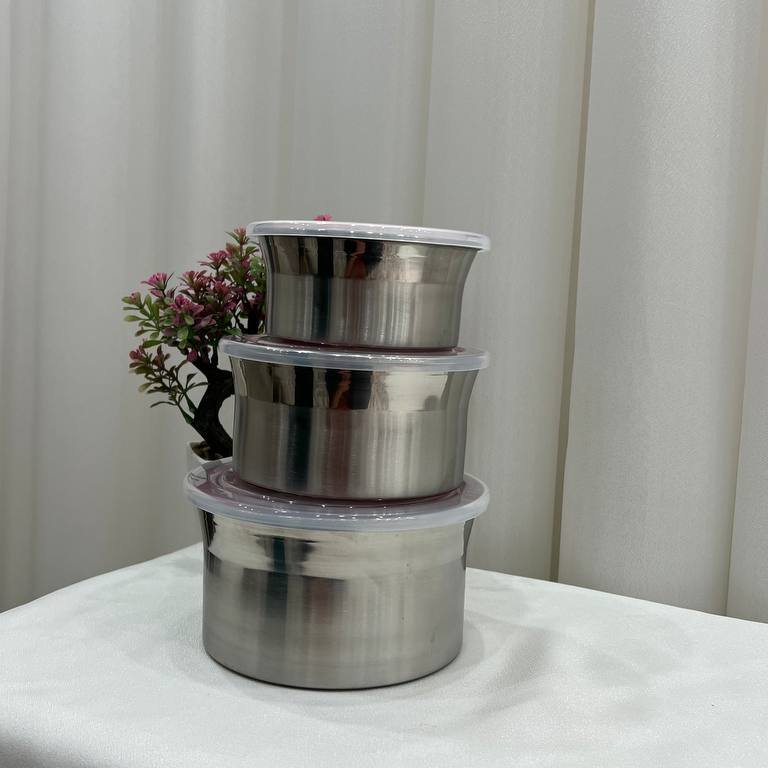سرویس 3تیکه فریزری استیل یونیک نگیر ورق ضخیم وبا کیفیت _درب دار_ گرد آشپز خانه درب دار _درب آن سلیکیونی وقابل استفاده در مایکروفر فریز