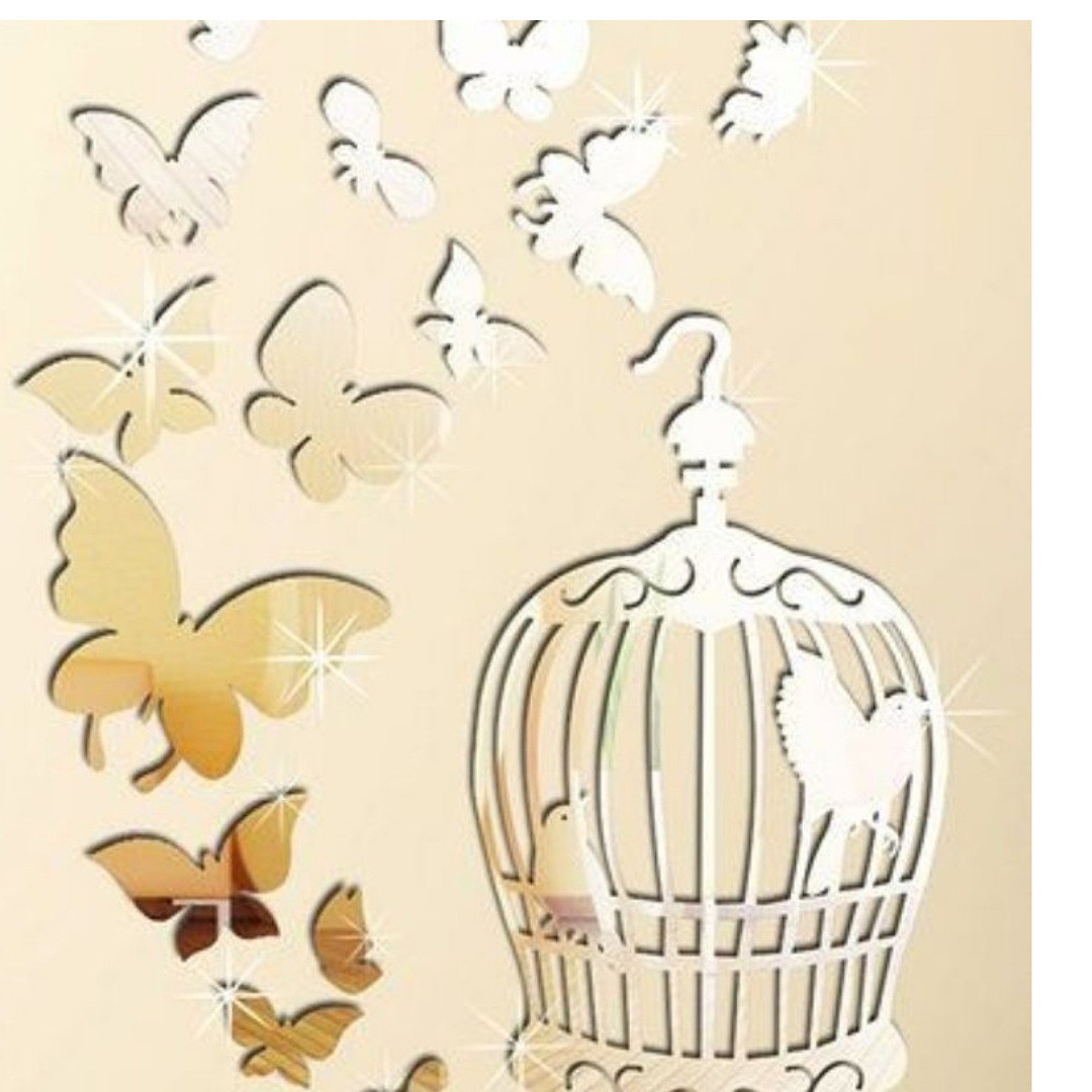 آینه دکوراتیو مولتی استایل، طرح قفس و پروانه، در دو رنگ طلایی و نقره ای، سایز 25 سانت مبلمونسرا مدل 264174