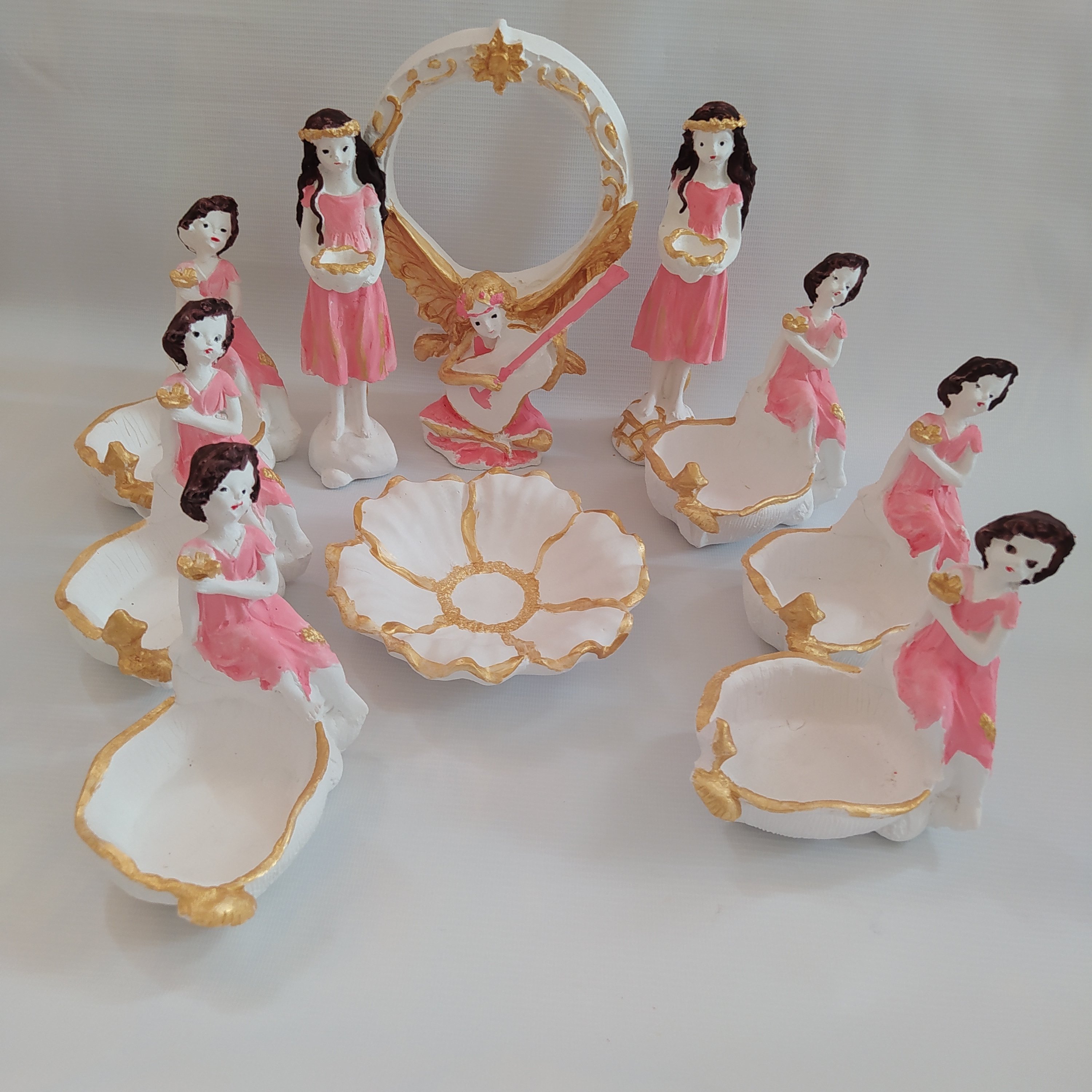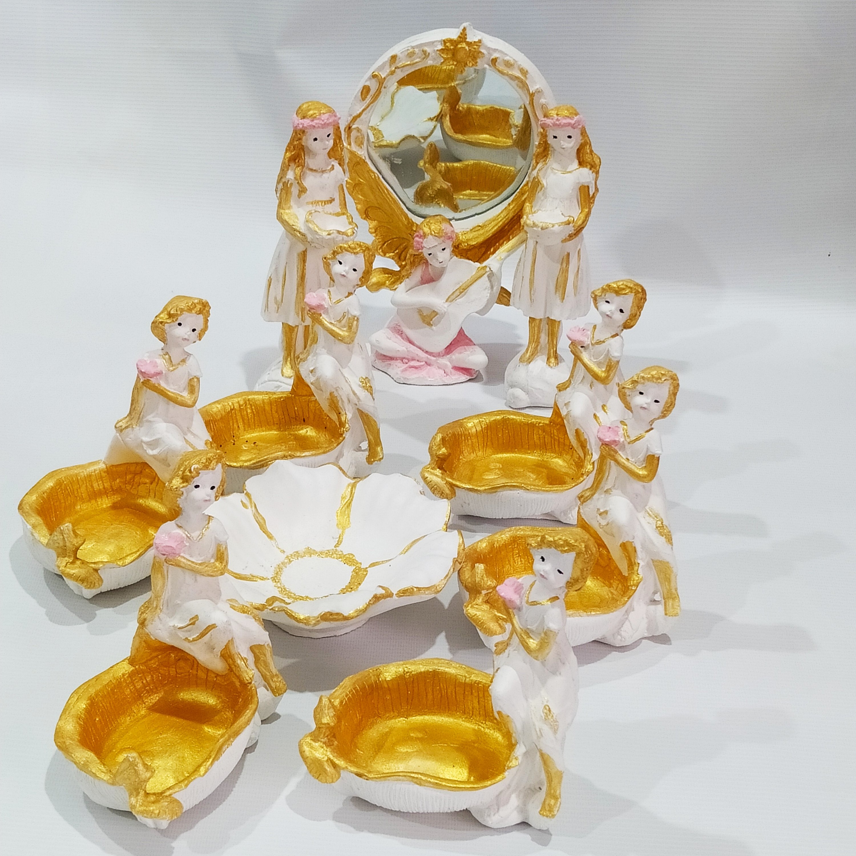 ست هفت سین فرشته در رنگ های مختلف قابل سفارش میباشد مناسب سفره هفتسین ست قاب آینه داره اما فاقد آینه میباشد