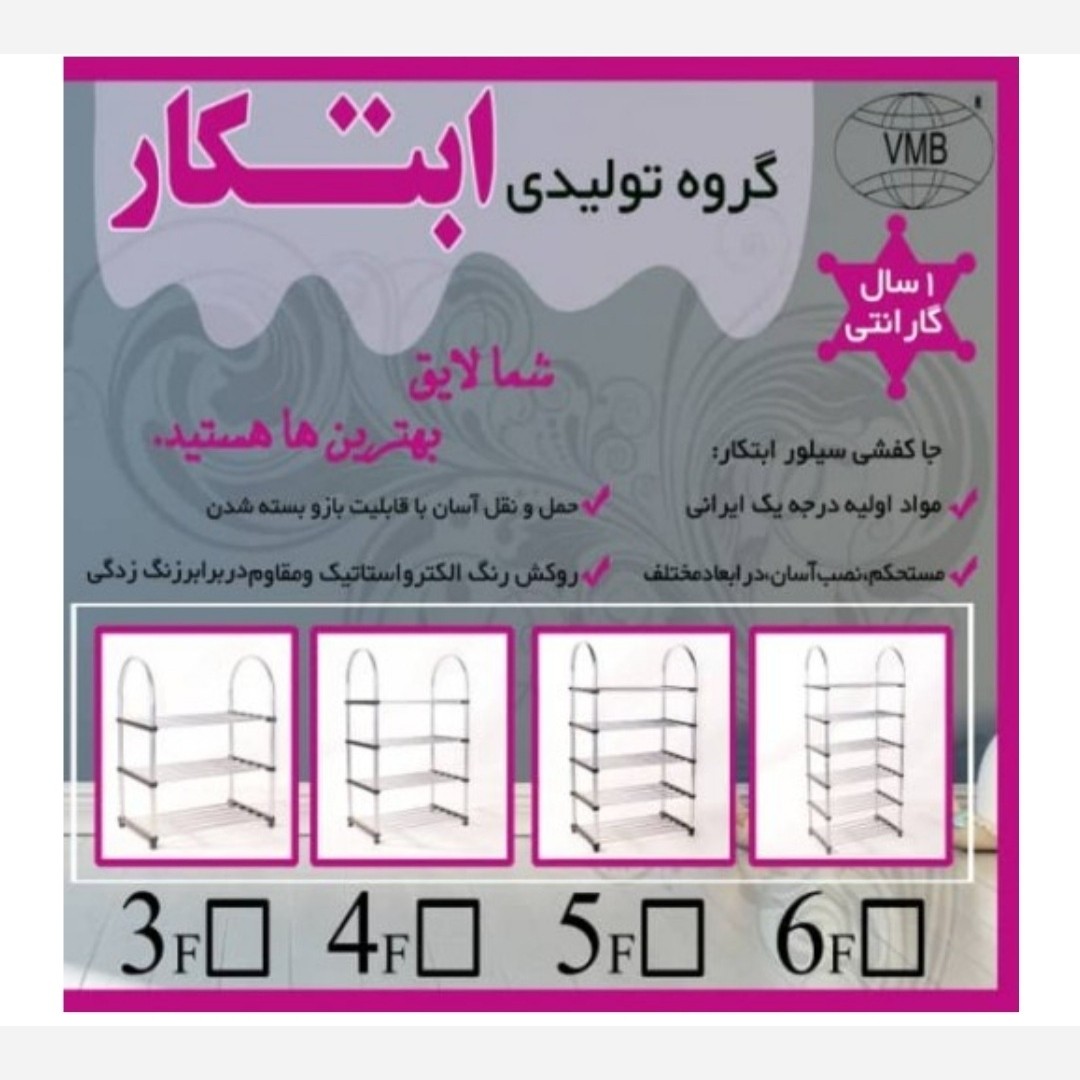 جاکفشی طرح سیلور ابتکار با اسکلت فلزی روکش رنگ الکترواستاتیک مستحکم سه طبقه تاشش طبقه