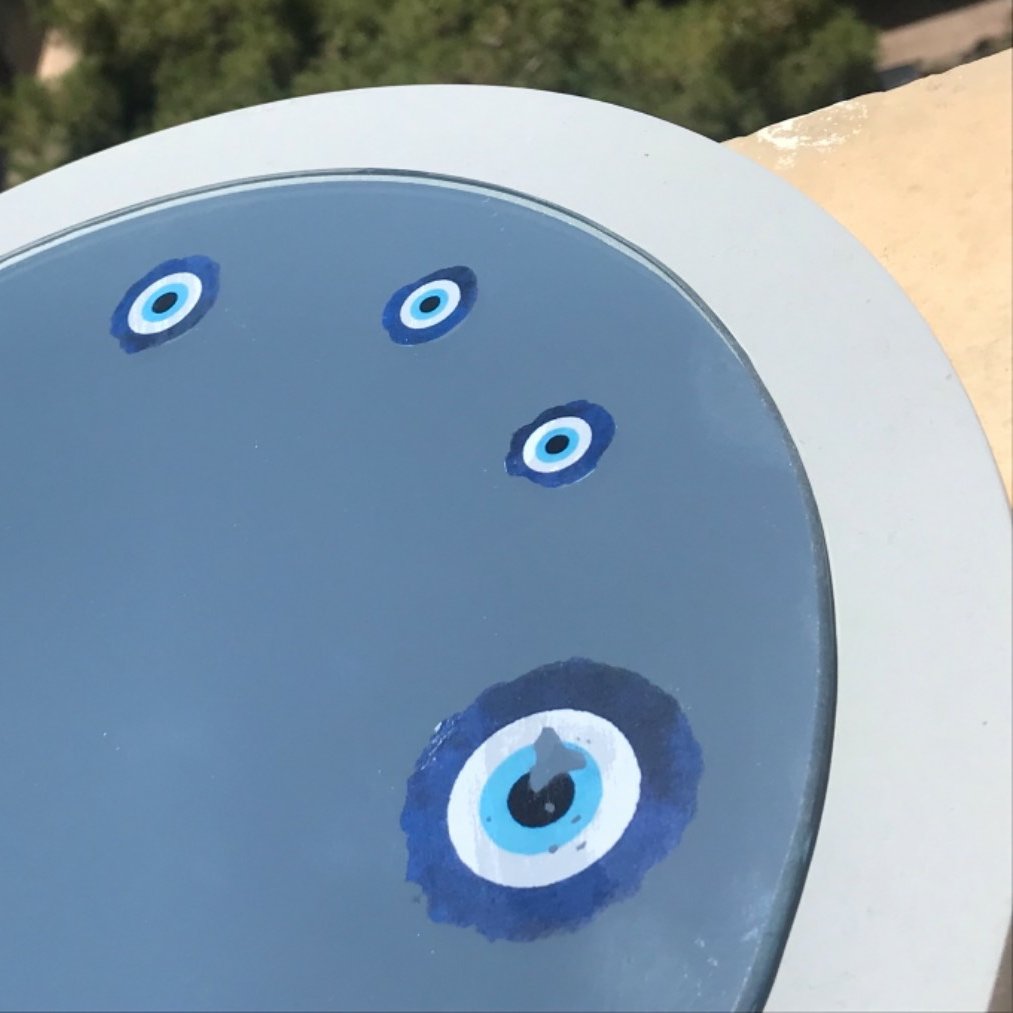 آینه آنتیک کار دست طرح گرد جشم و نظر این دکوراتیو سنتی با ارزش صنایع دستی بانو ایرانی میباشد آینه قابل تمیز کردن با دستمال و شیشه شوی است ابعاد قطر آینه ۳۰ سانتی متر دکوراتیو سنتی و خاص برای شما خوش سلیقه ها امکان تحویل کار با عکس و طرح شما نیز وجود دارد