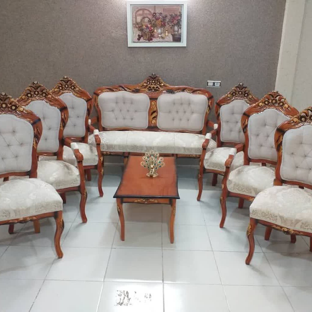 توجه ناهارخوری ومبل مدل دوگل آلمانی عکس دومی برند قیمت ست کامل باجلومبلی عسلی سه تیکه وناهارخوری ۴نفره جنس تمام چوب راش ۲۵ت پارچه ی شانل یزددرجه 1 کیفیت عالی رنگبندی انتخاب مشتریه کرایه به عهده ی مشتریع ارسال به سراسرایران