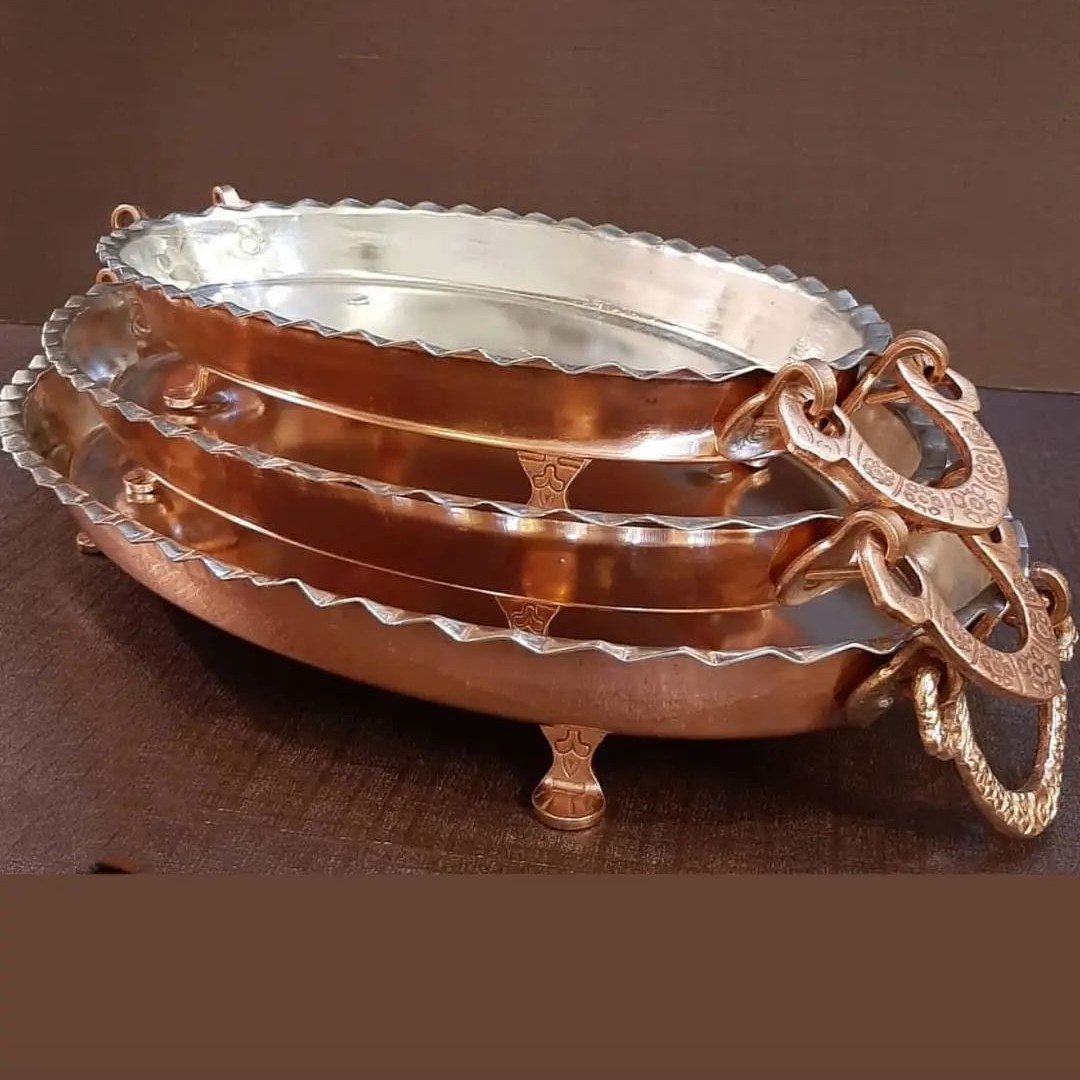 دیس بیضی مسی سایز 2 گوشواره دار طول 39 مناسب برای مرغ خوری برنج خورشت مبلمونسرا مدل 270927