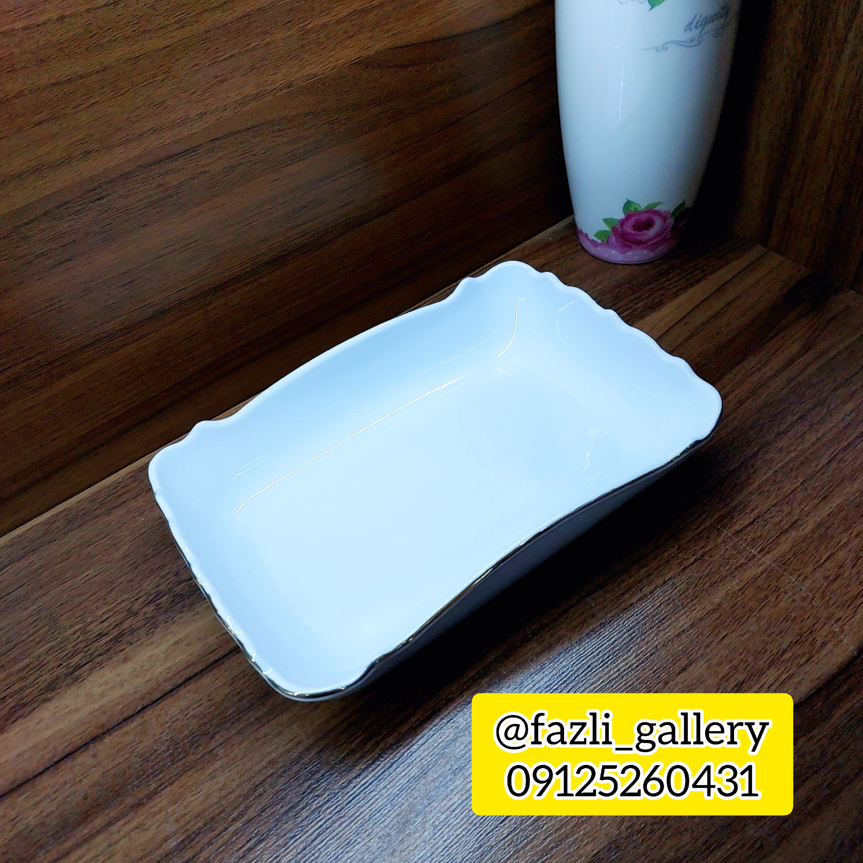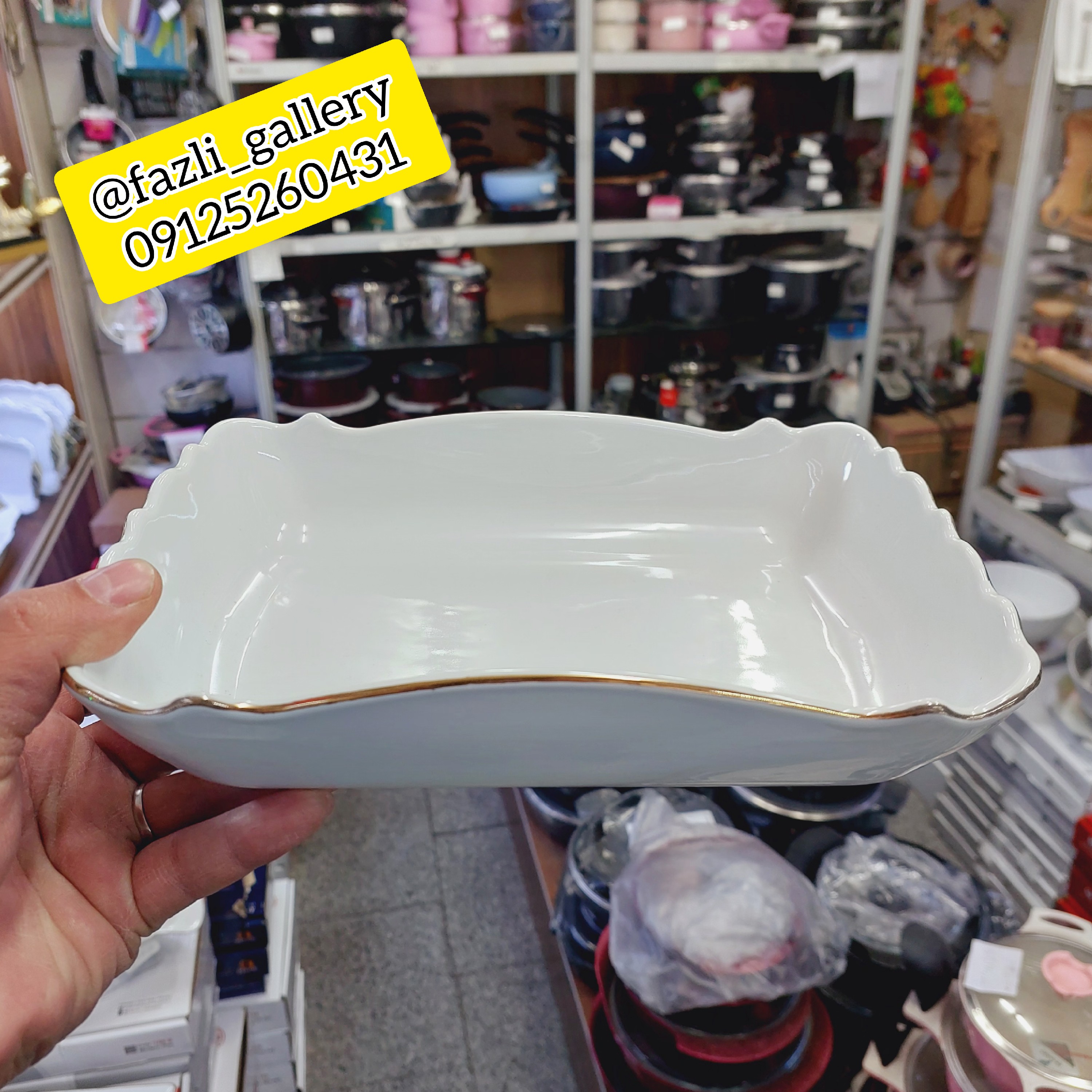 تابه مستطیل موج لمون 316s سایز کوچک تابه مرغخوری مرغ خوری مرغخوری چینی سالاد خوری تابه لب طلا تابه موج لمون مبلمونسرا مدل 274110