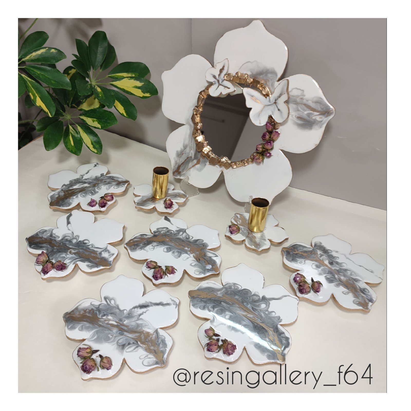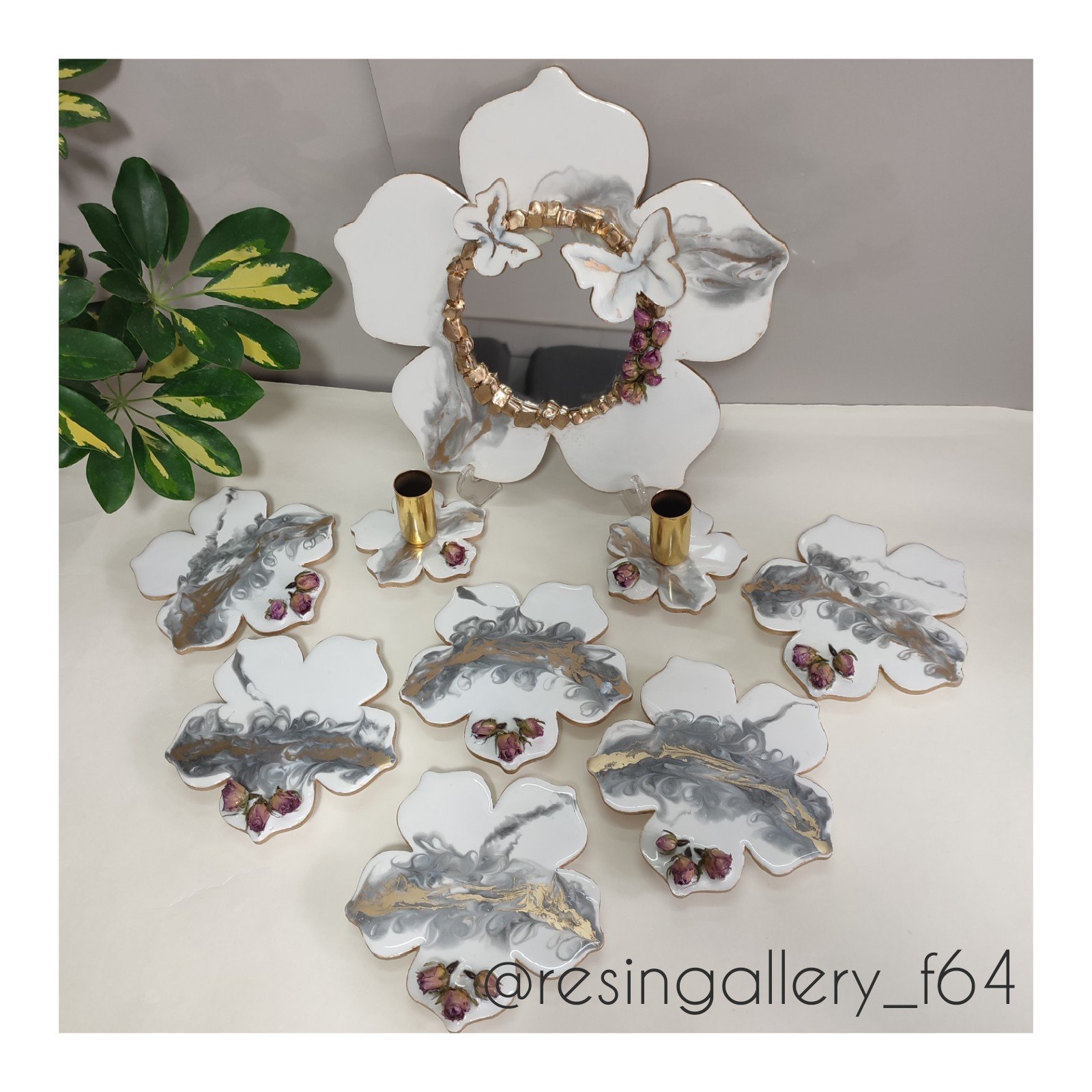 ظروف هفتسین رزینی عید 1402 شامل قاب آینه دو عدد شمعدان و 6 عدد ظرف مبلمونسرا مدل 259869