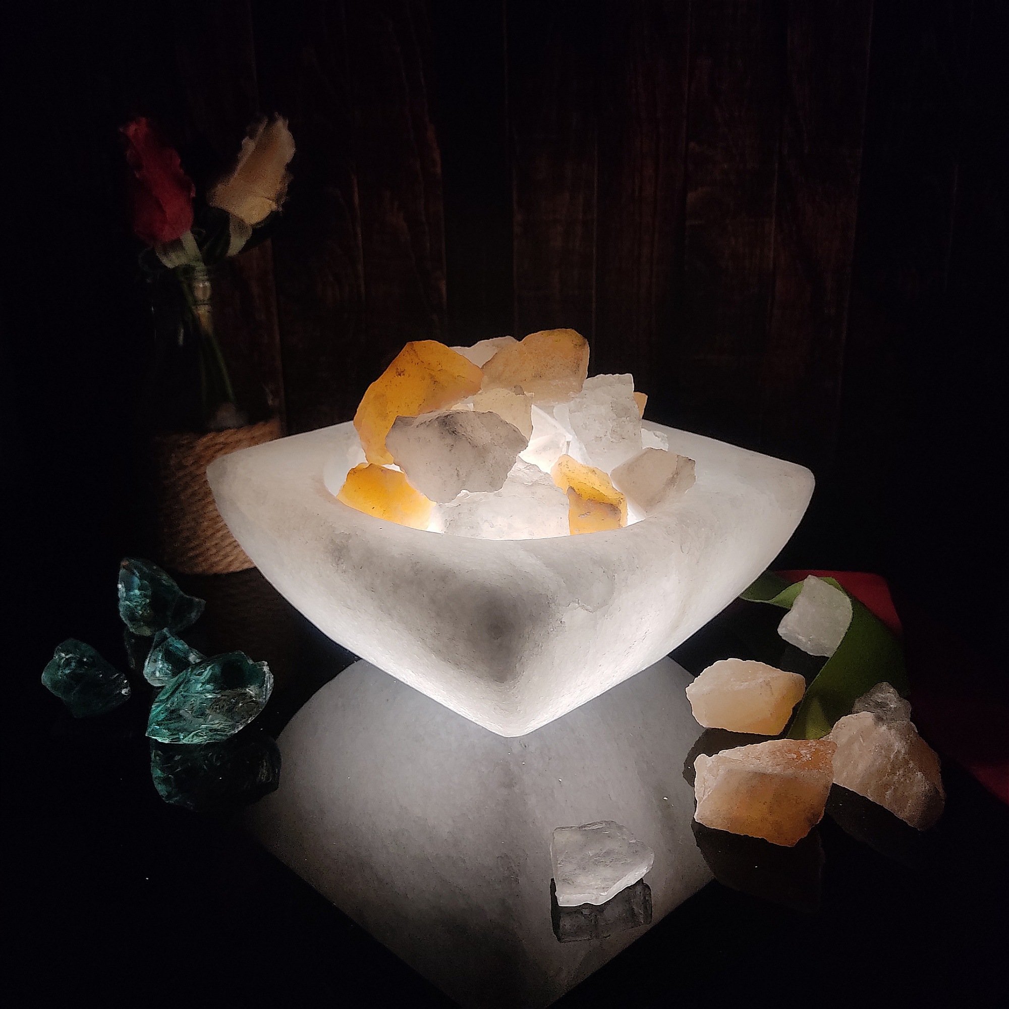 استحکام بالا و بافت منسجم . مقاوم در برابر گرما و سرما . رنگ ثابت . قابل استفاده به عنوان دکوری یا روی میز . فوق العاده کم مصرف . تولید و تراش از مرغوبترین سـنگ نـمک معـادن شـرکت کـلـبه نــمک . آمیزه ای از هـنر و طــبیعت و فـناوری . رنـگ بـندی مـتنوع لامـپ . دارابودن خاصیت طبّی و دفع چشم زخم . احتمال وجود اختلاف جزئی در ابعاد به دلیل تهیه و تراش با دست.