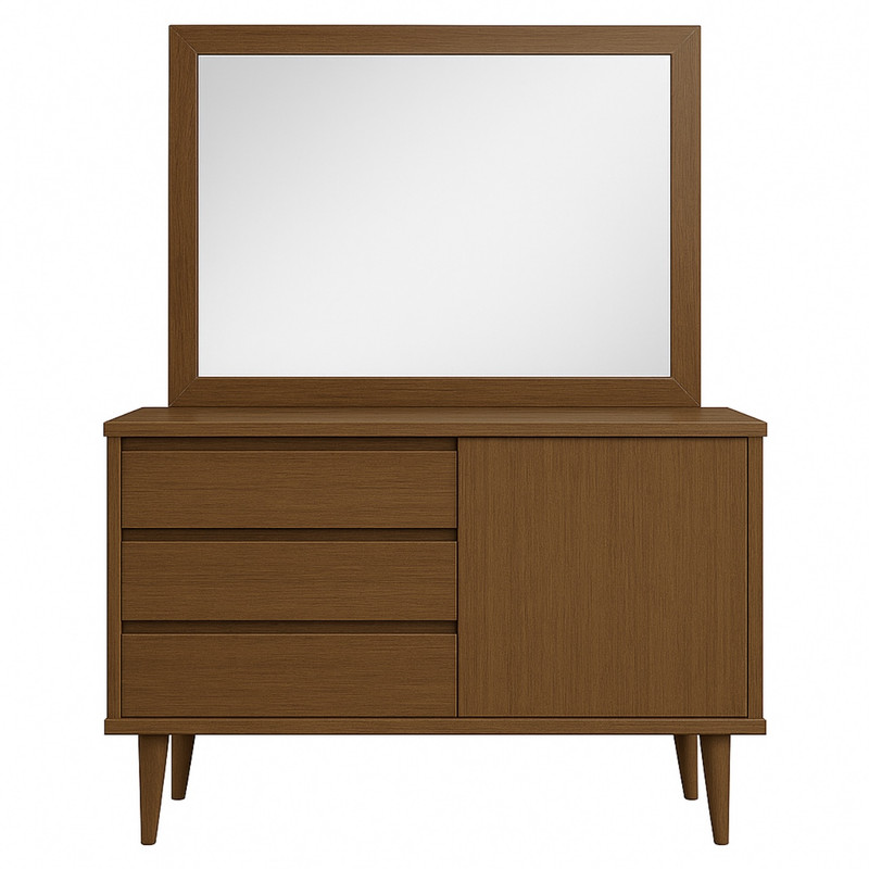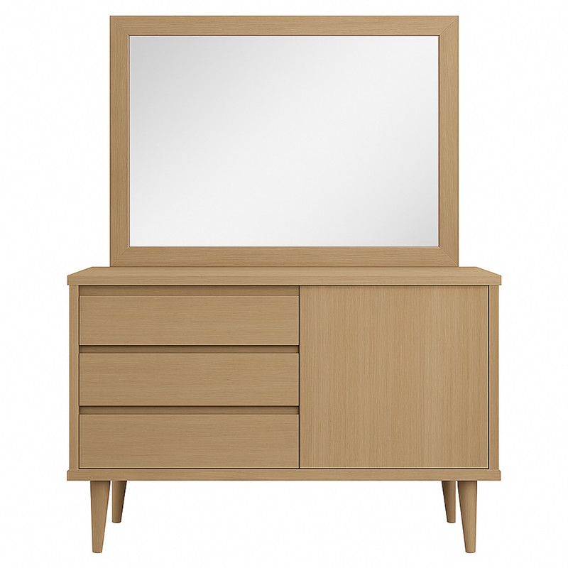 این آینه کنسول با طراحی ساده و مینیمال، انتخابی ایدهآل برای دکوراسیون مدرن منزل شماست. ترکیب سه کشوی جادار در سمت چپ و یک کمد دربدار در سمت راست، فضای مناسبی برای نگهداری وسایل شخصی، لوازم تزئینی یا اسناد فراهم میکند. آینه بزرگ با قاب چوبی هماهنگ، جلوهای یکپارچه و شیک به محصول بخشیده و آن را به یک آیتم کاربردی و دکوراتیو تبدیل کرده است