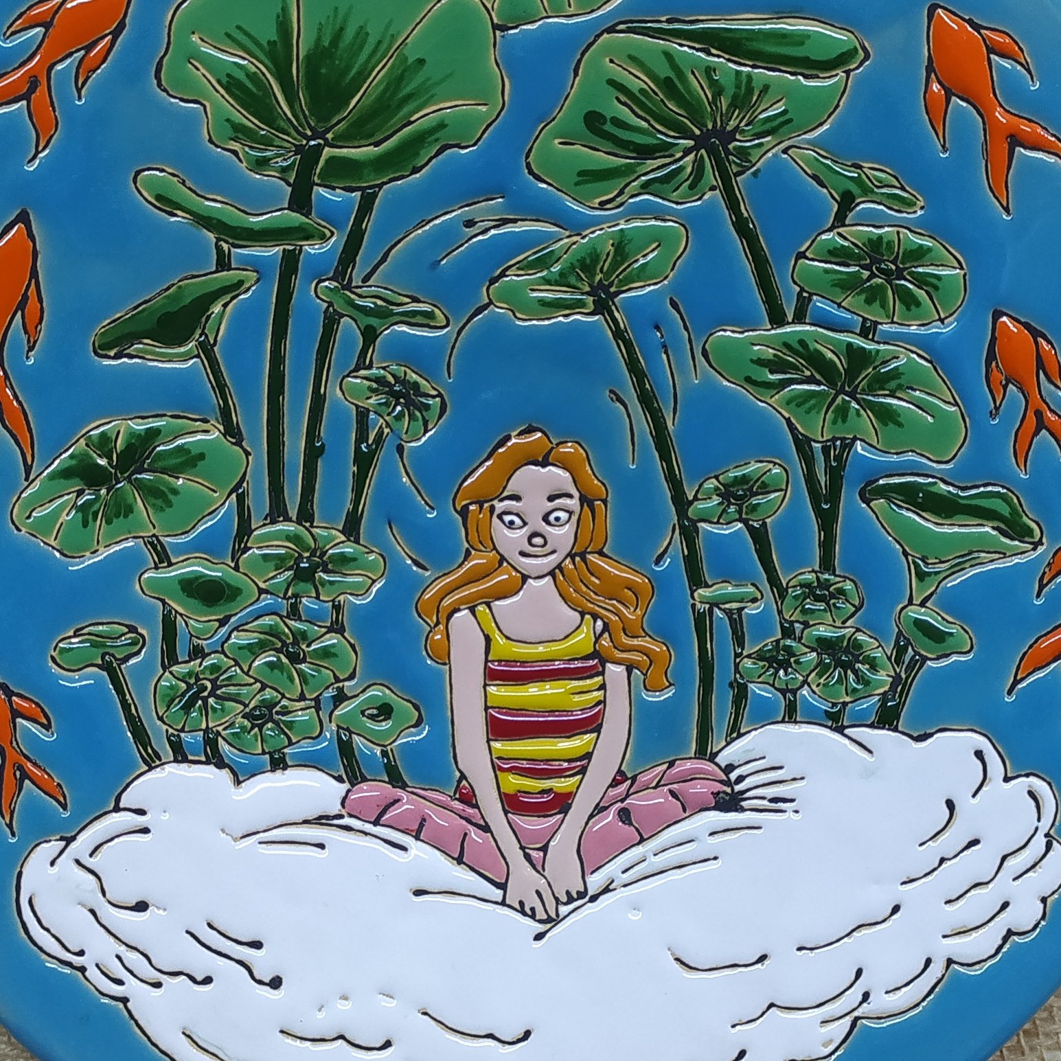 دیوارکوب بشقاب سفالی تمام لعاب با نقش آکواریوم قابل شستشو واستفاده