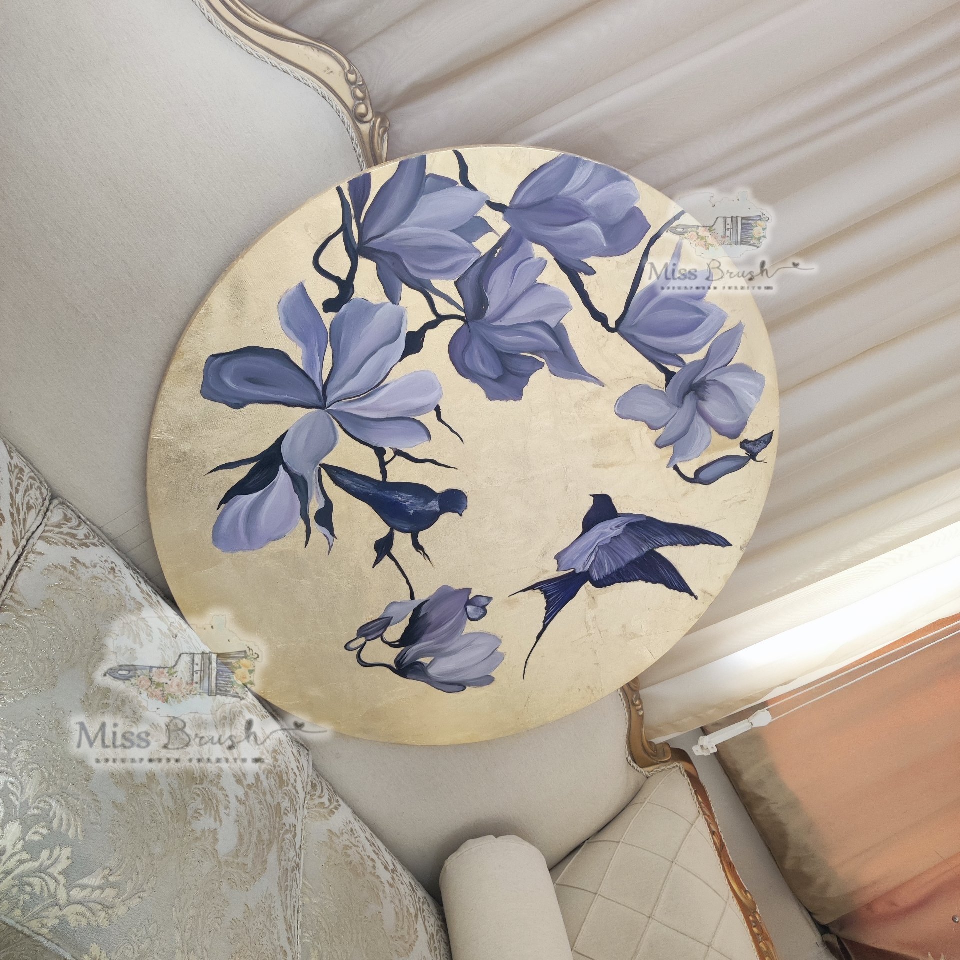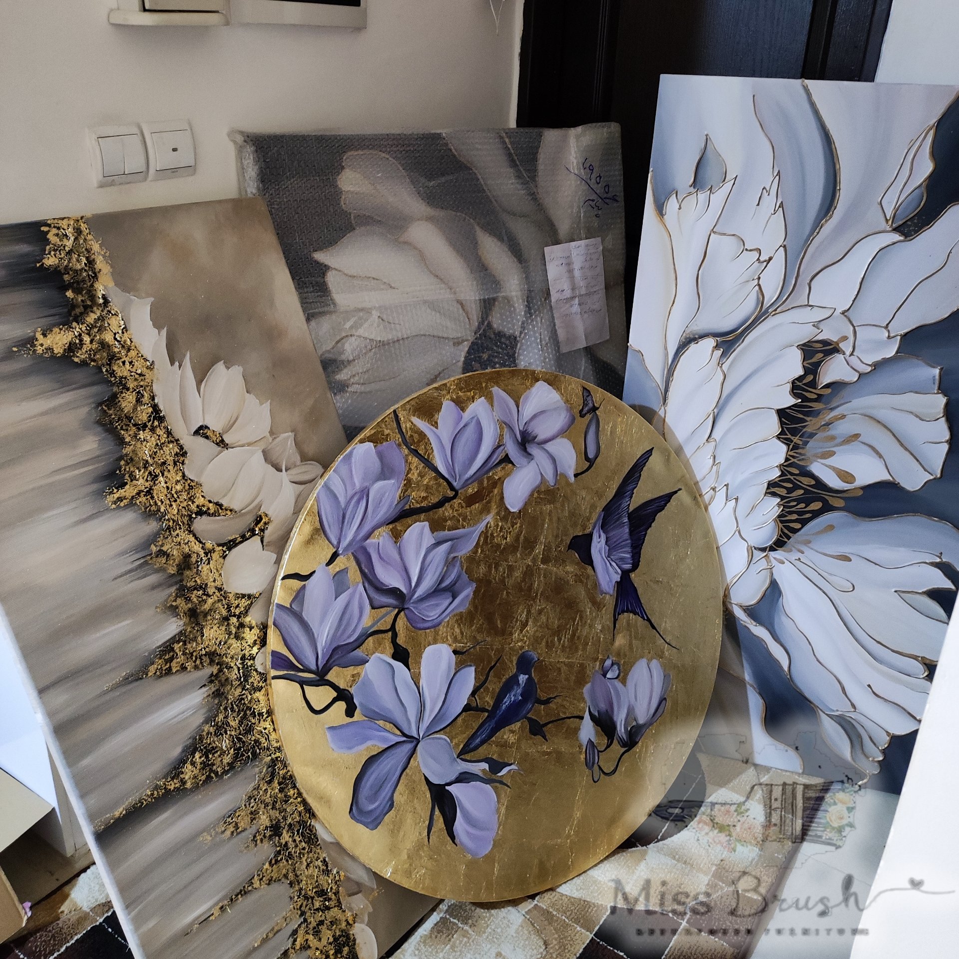 تابلو مدرن گل و پرنده تمام ورق طلا مبلمونسرا مدل 267439
