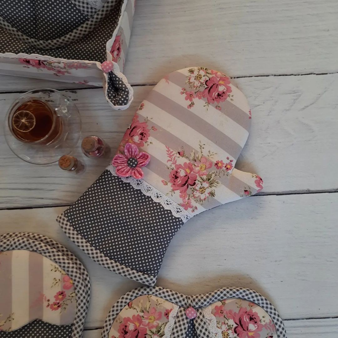 سرویس ۸تیکه دوخته شده با بهترین و باکیفیت ترین پارچه ۱۰۰ درصد پنبه نخ تضمین شده کیفیت قانون ملیکائه با عشق میدوزم تا به تو مهر دهد سفارشتو ثبت کن تا از دستش ندادی😉🥰😍 نیم ستمون شامل: یک جفت دستکش فر ۶لایه فانتزی ترکیبی یک جفت دستگیره قلبی ۴لایه فانتزی ترکیبی دو عدد زیر قابلمه ایی ۴لایه فانتزی ترکیبی شرایط اقساطی هم داریم✅️