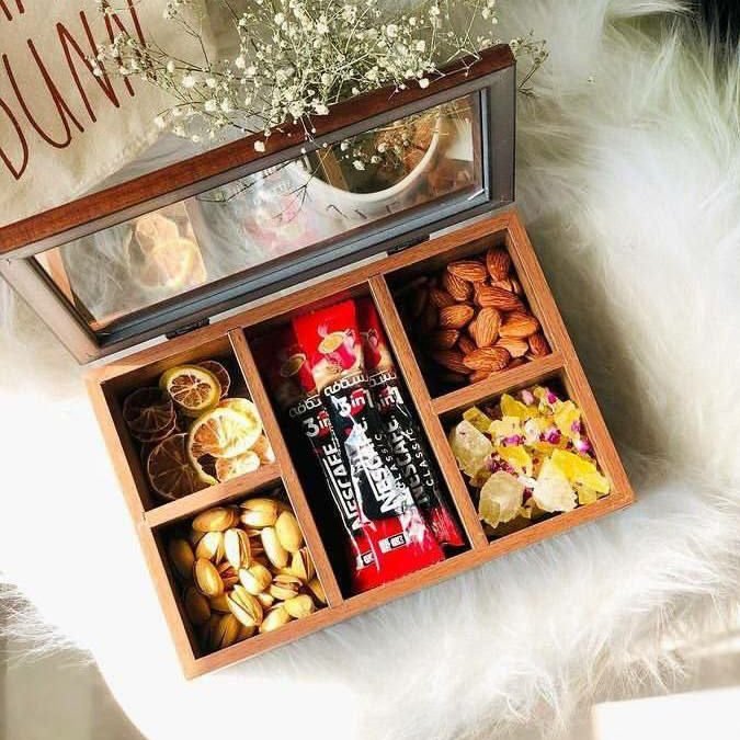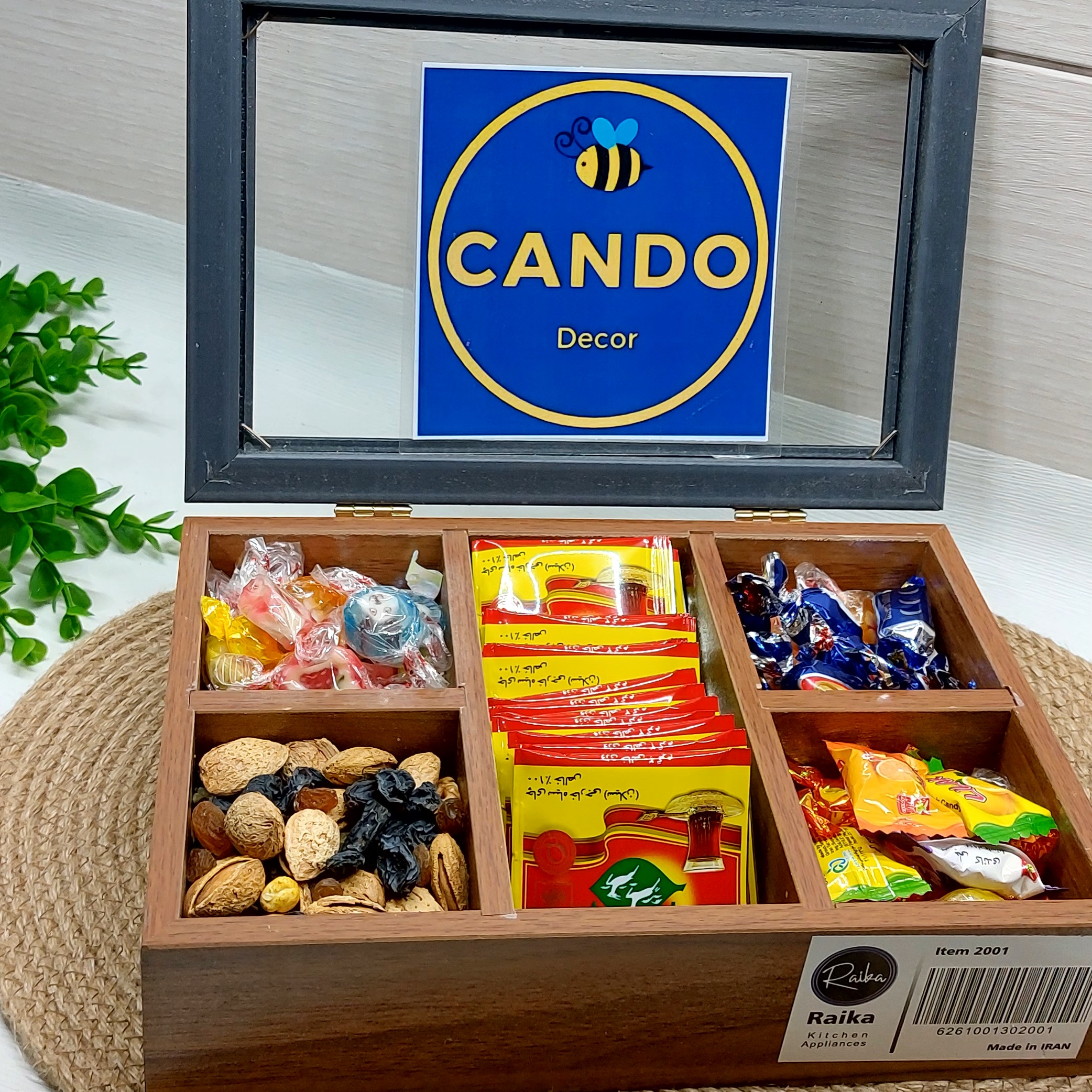 📌تیباکس ۵خانه مستطیل چوبی تنقلات خوری دربدار درب شیشه ای کیفیت درجه ۱💯