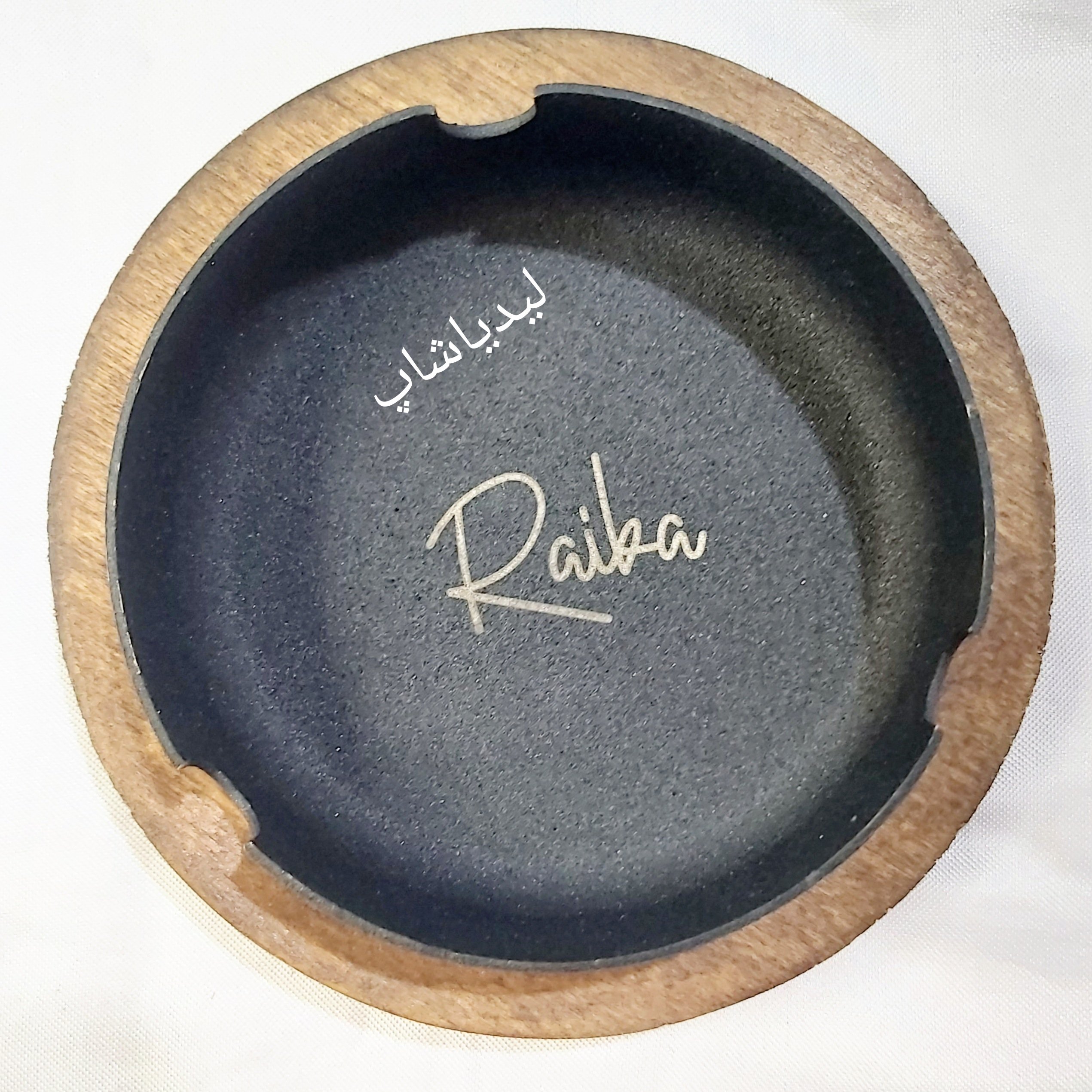زیرسیگاری چوبی فلزی با رنگ ثابت و قابل شستشو بادوام و شکیل چوب قهوه ای روشن بامبو و کاسه وسط فلزی مشکی با مارک رایکا
