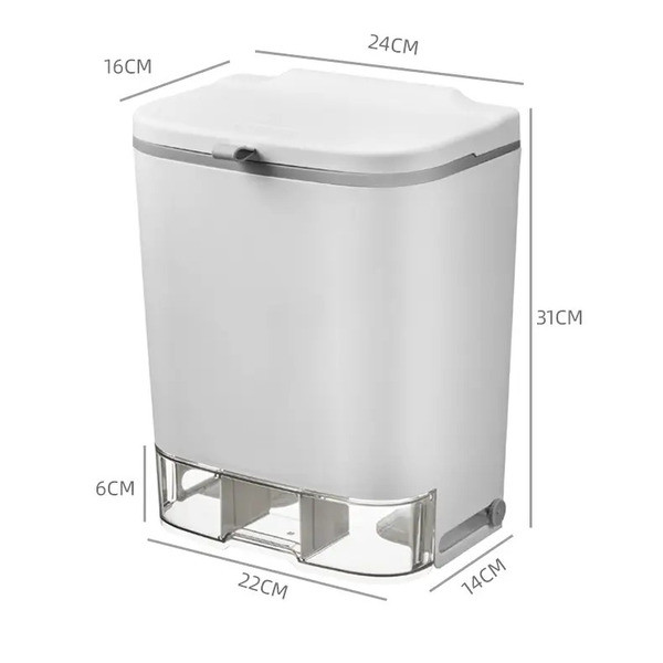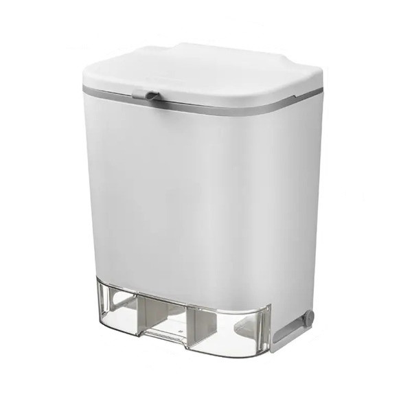 سطل زباله روکابینتی باکس دار 9 لیتر (کایزالاهوم) ، این سطل توسط زبانه سلیکونی روی درب در دو جهت جلو و بالا به راحتی باز میشود . طراحی نصب در دومدل دیوارکوب و روکابینتی . بدنه ی باریک باعث صرفه جویی در فضا میشود . دهانه ی عریض و دارای حلقه ی جمع آوری نایلون . جهت مصارف آشپزخانه ، حمام و سرویس بهداشتی . دارای باکس زیر سطل جهت نگهداری رول کیسه زباله .(جنس بدنه : پلی پروپیلن )