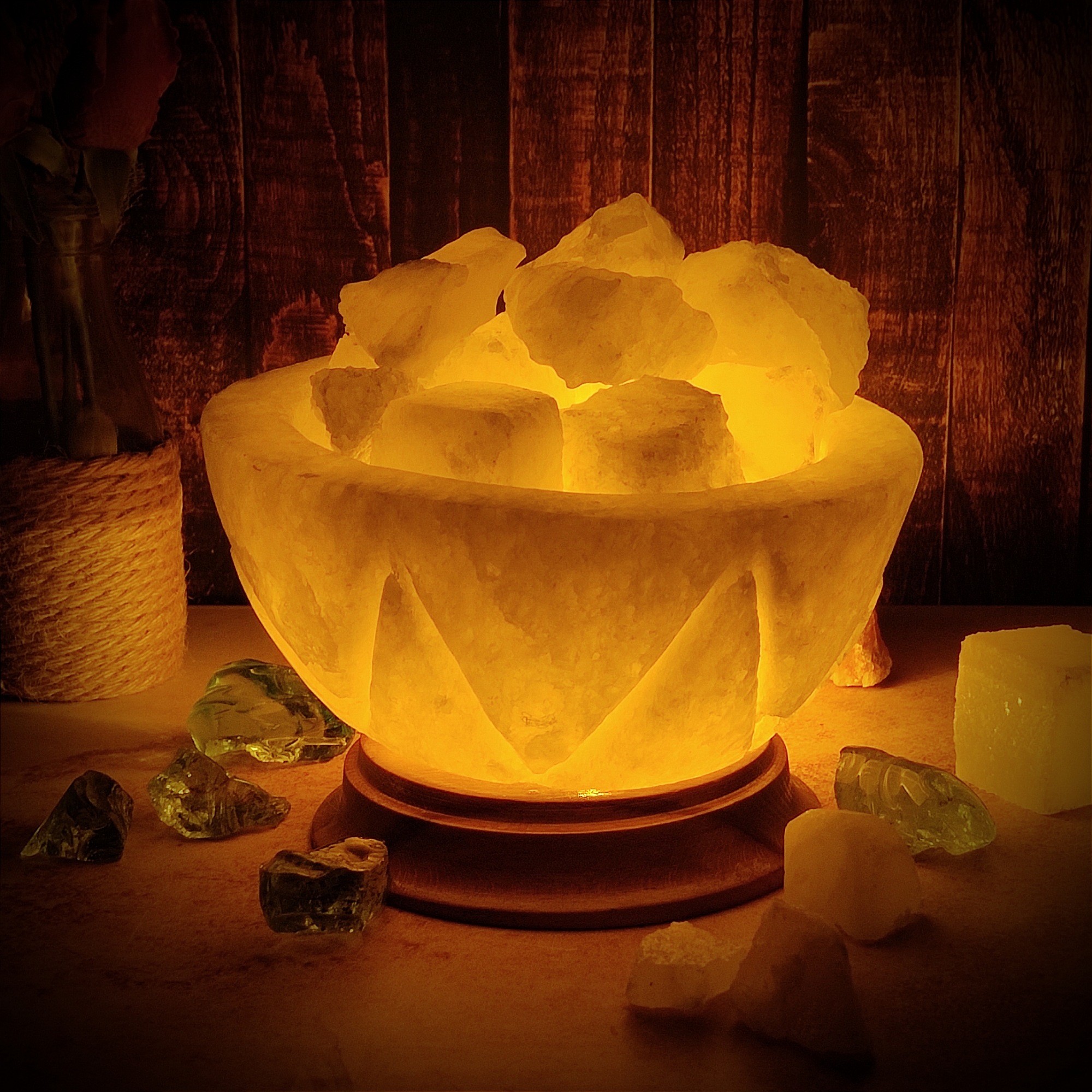آباژور سنگ نمک کاسه ای شیاردارپایه چوبی کد417 مبلمونسرا مدل 231381