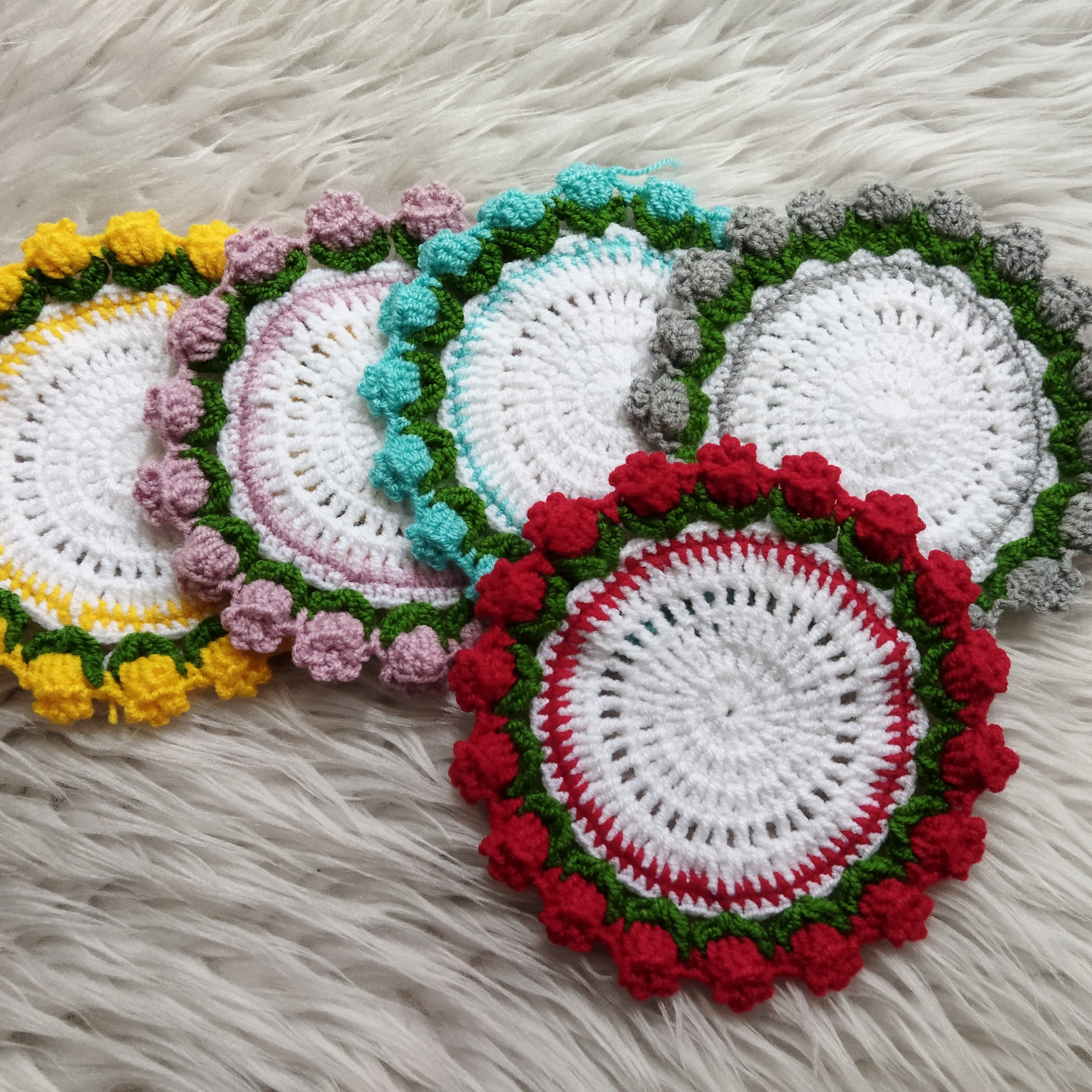زیر لیوانی پک 6عددی گل لاله برجسته قلاب بافی مبلمونسرا مدل 299626