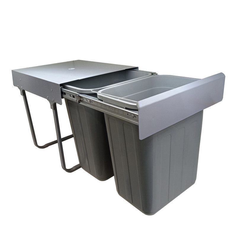 سطل کابینتی 50 لیتری از انواع سطل زباله های دوقلو بوده که با وجود یک چهارچوب ریلی به صورت کشویی و در راستای عمق کابینت ، بیرون میاید. جنس بدنه ی چهارچوب سطل ، فلزی بوده و دارای پوششی از رنگ پودری الکترواستاتیک (کوره ای) است. جنس سطل ها از پلاستیک فشرده می باشد . دوقلو مناسب جهت تفکیک زیاله تر و خشک .