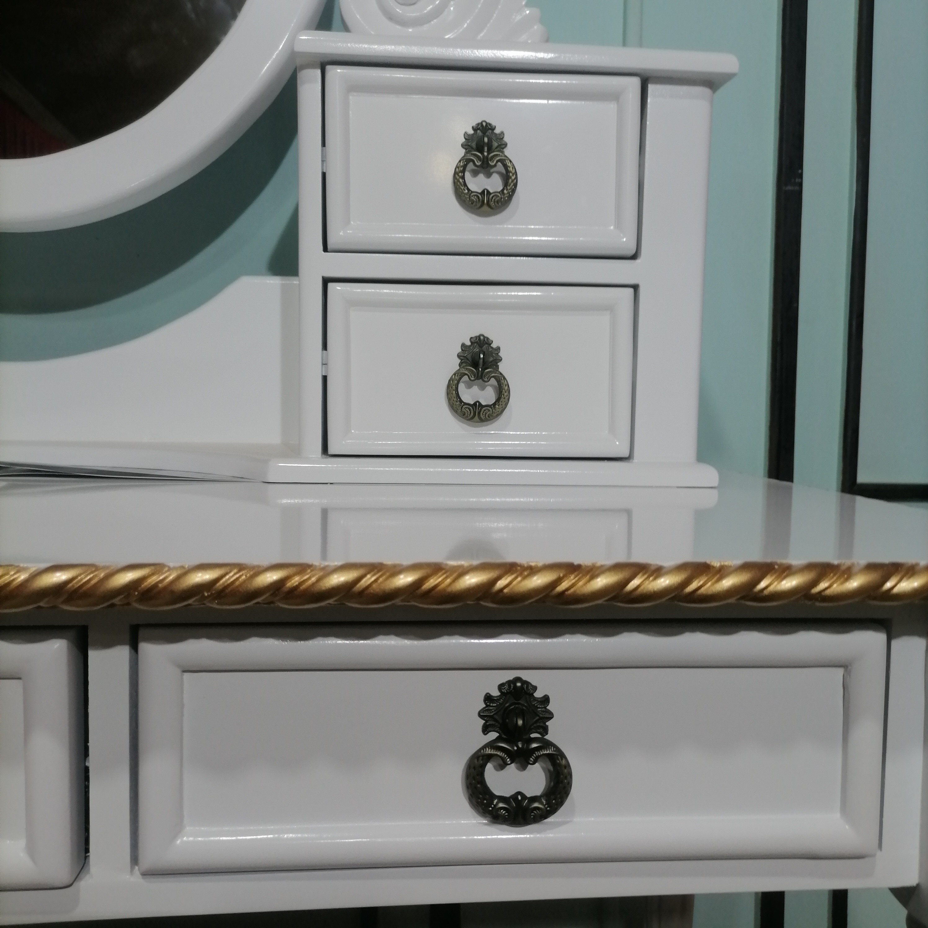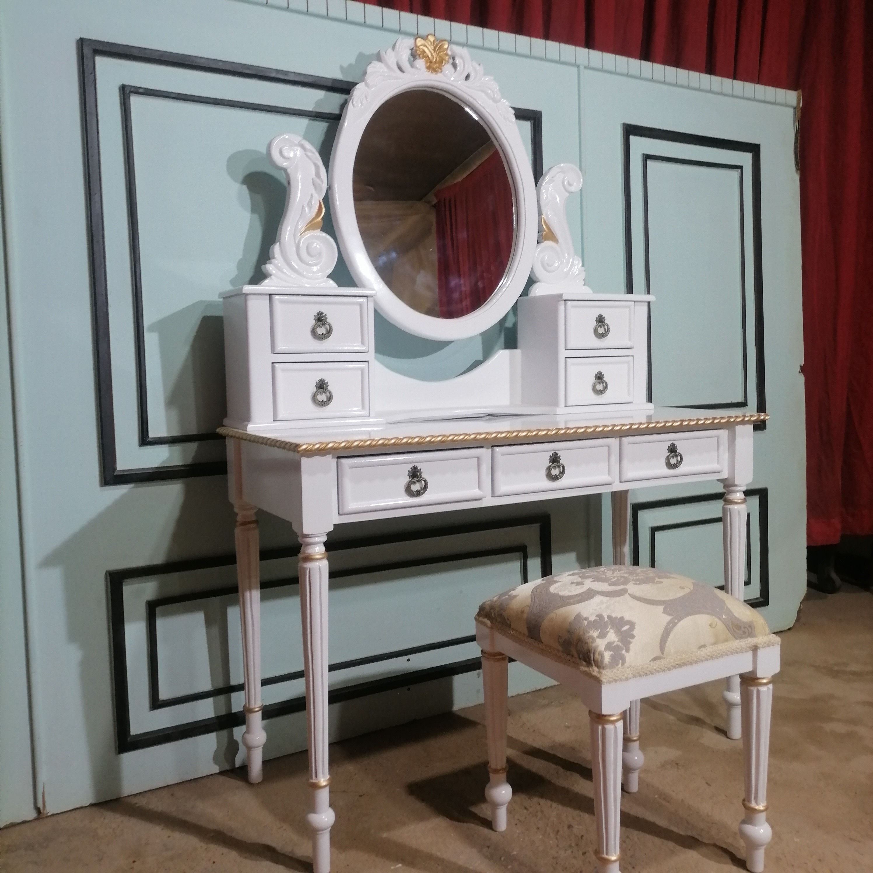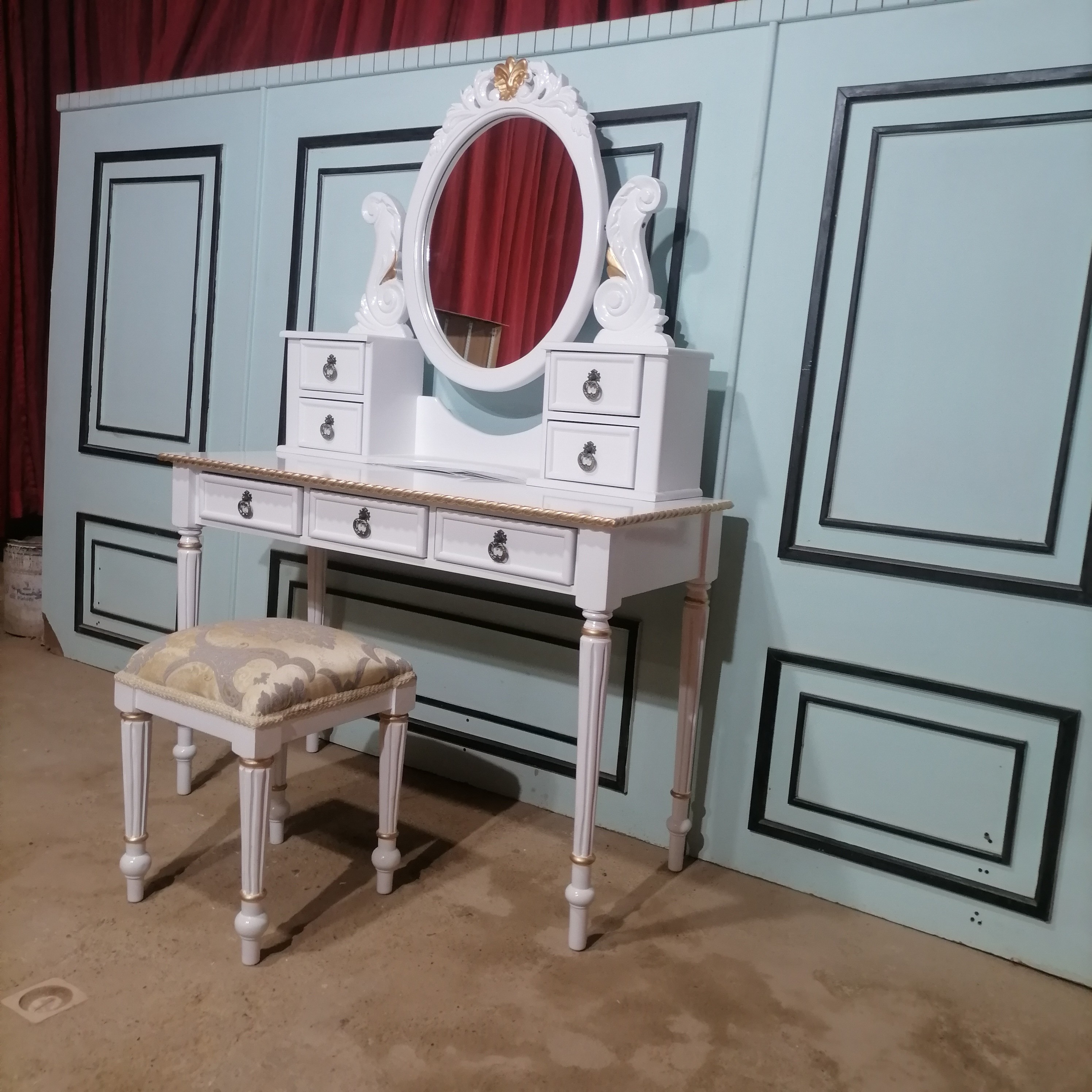 میز آرایش و آینه کلاسیک سفید طلایی دخترانه مبلمونسرا مدل 221120