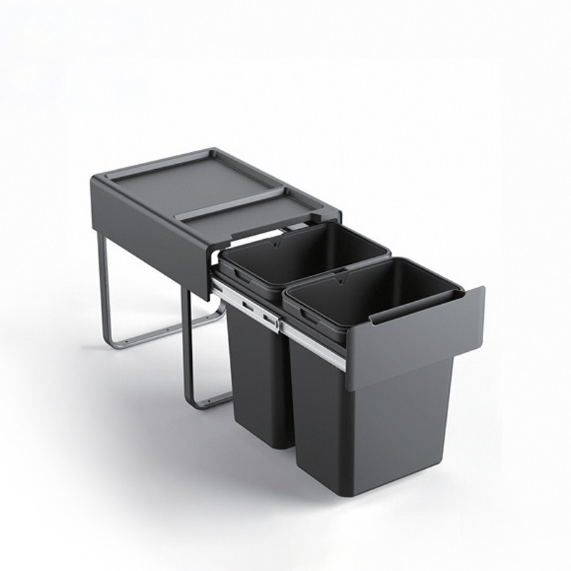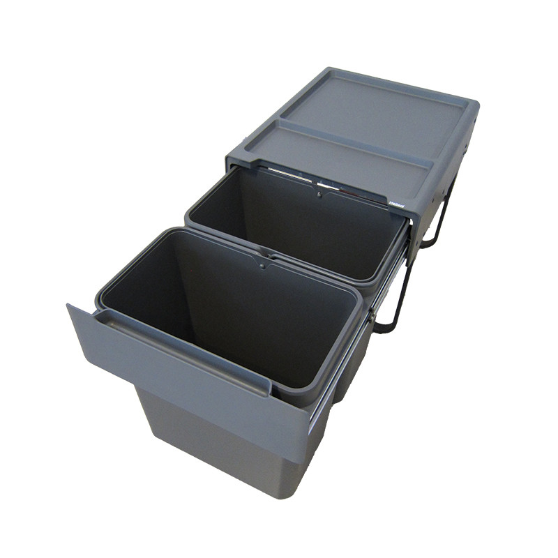 سطل 2 قلو ریلی زیر سینک آرام بند 36 لیتری مدل 9192 از محصولات شرکت ملونی است. این سطل زباله کابینتی در دسته اکسسوری کابینت قرار می گیرد و شامل 2 مخزن 18 لیتری می باشد. ابتکار در طراحی، زیبایی ظاهری و عملکردی کاربردی، همگی خصوصیات منحصر به فردی هستند که می توانید به صورت یکجا در سطل زباله دوقلو ریلی متوسط ملونی کد 9192 ببینید. ل به کار بردن ریل در سطل زباله های کابینتی راحتی کاربر است بنابراین ریل موجب جا به جایی آسان با انتقال وزن سطل به خود می شود .این سطل زباله مجهز به ریل ساچمه ای آرام بند است .سطل زباله های دو مخزنه عمدتا برای تفکیک زباله های تر و خشک طراحی شده اند. این سطل زباله دارای 36 لیتری است که حجم هر مخزن برابر 18 لیتر است.