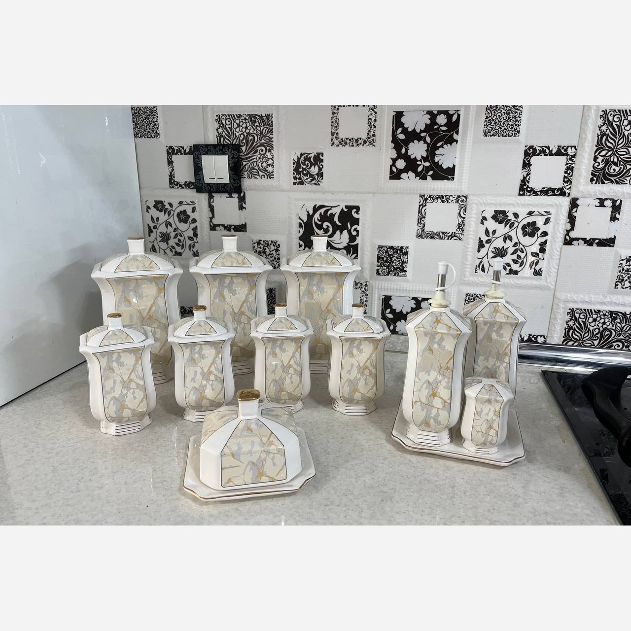 این سرویس چهارده پارچه میباشد. شامل : ست بانکه و ادویه ، ست آبلیمو خوری و نمکدان ، کره خوری در بسته بندی یونولیتی درجه یک