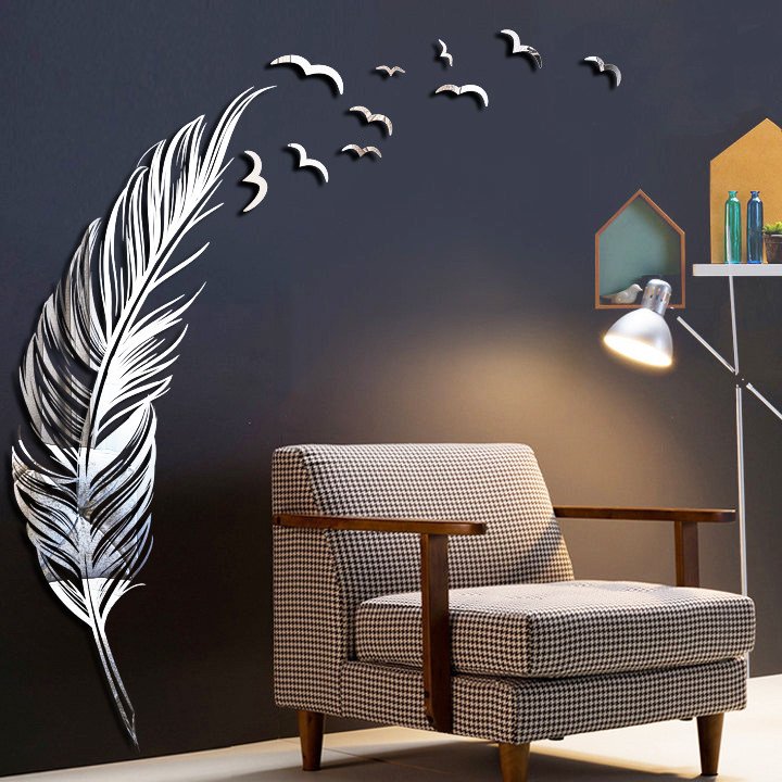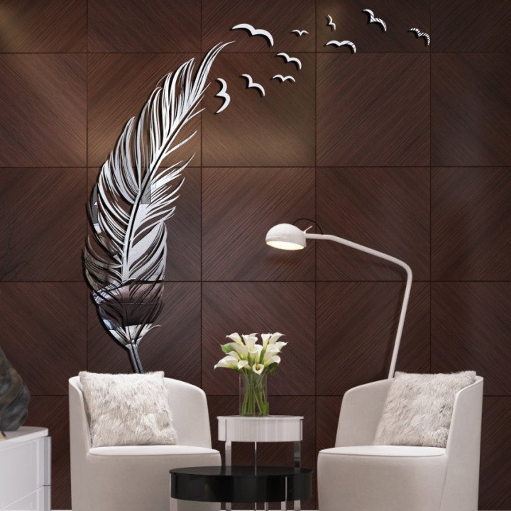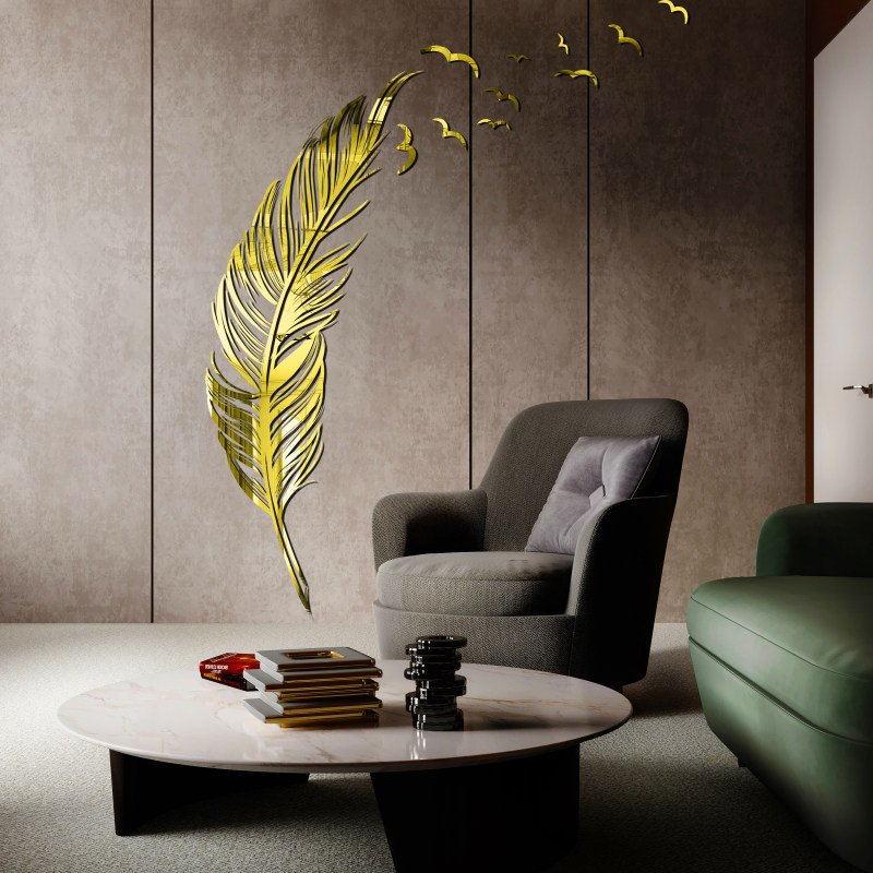 آینه دکوراتیو مولتی استایل، طرح پر، در دو رنگ طلایی و نقره ای، ارتفاع طرح 100 سانتی مبلمونسرا مدل 263663