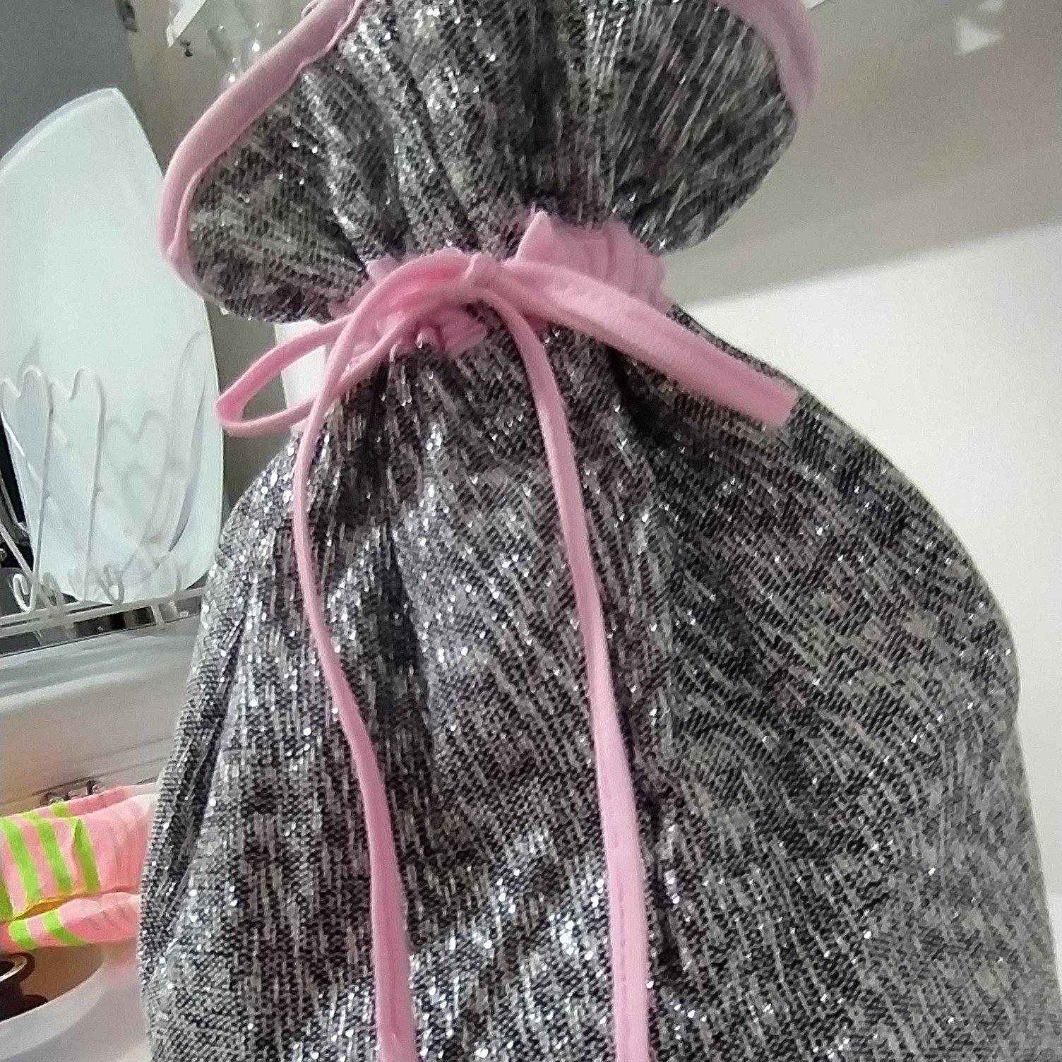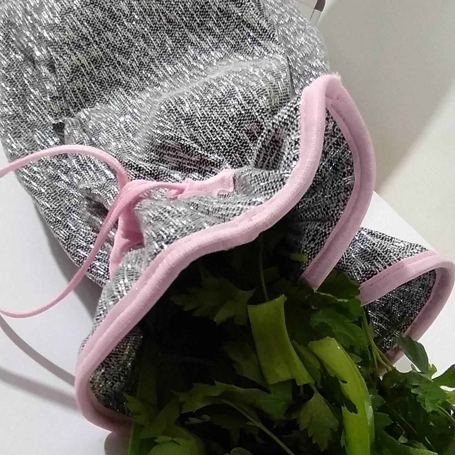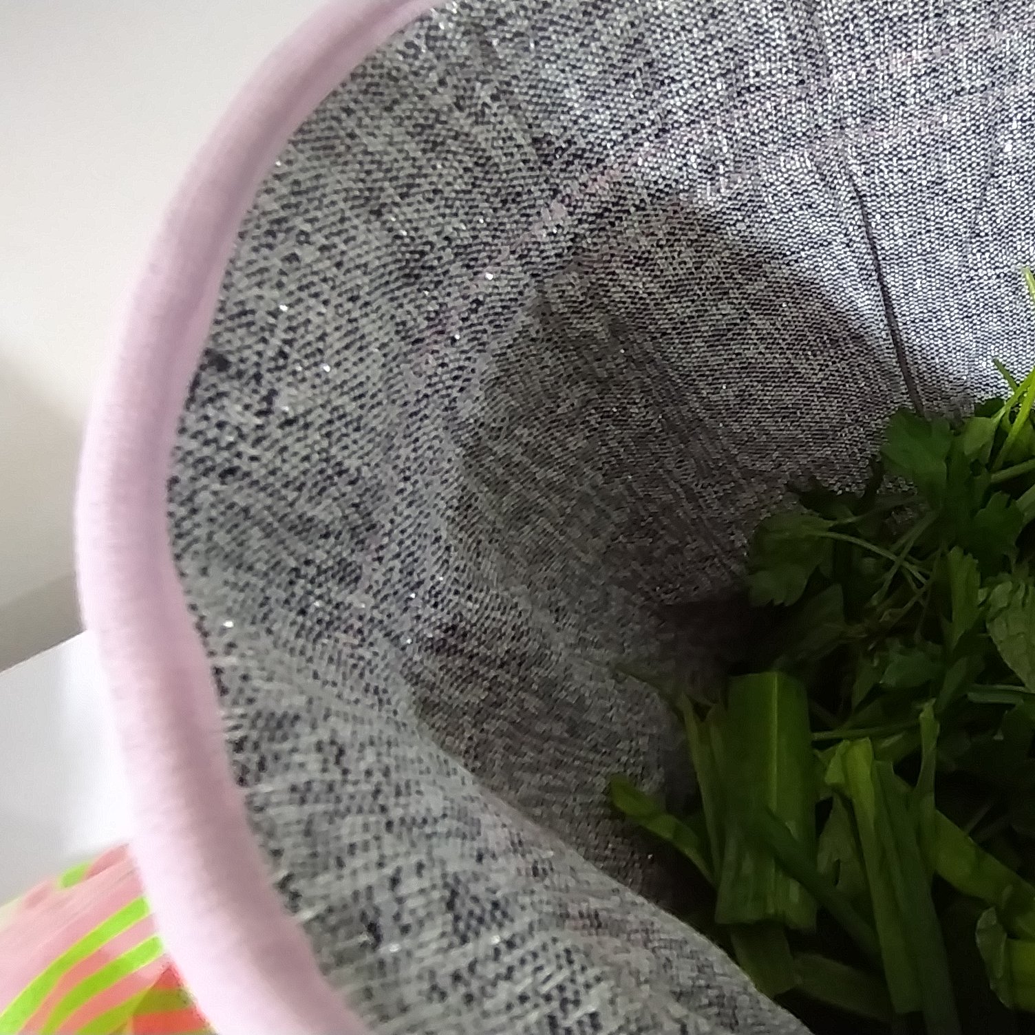 کیسه سبزی با پارچه ی دستبافت نخی مدل خمره ای حدود دو کیلو سبزی پاک شده توشجا میشه .