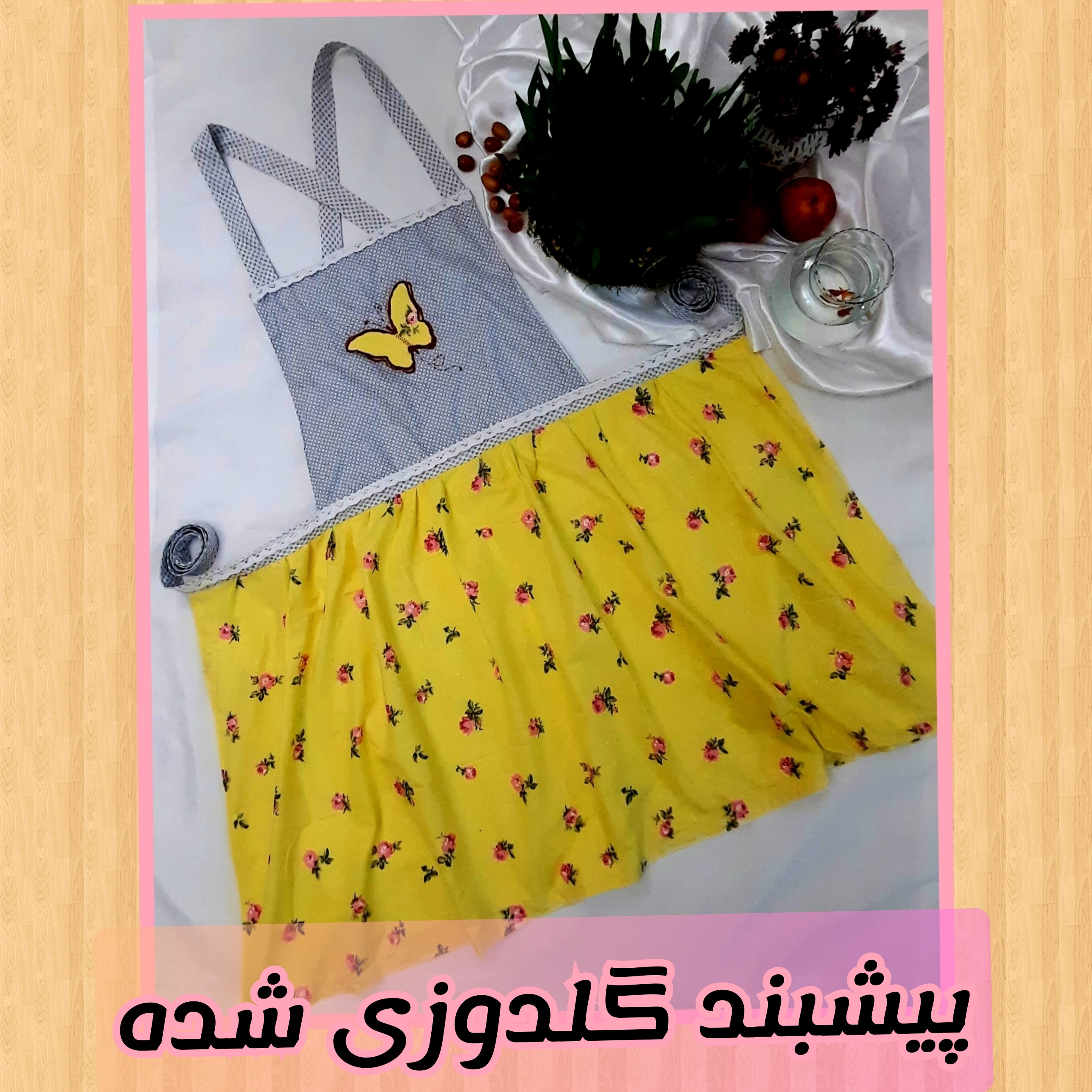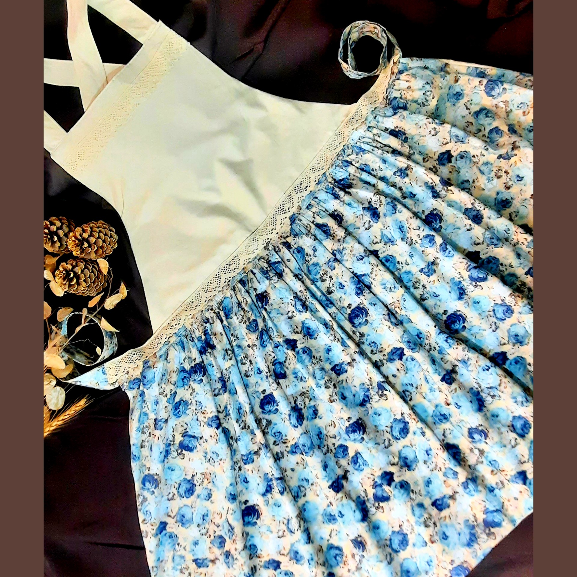 پیشبند آشپزخانه دامن چیندار و بالاتنه گلدوزی سه لایه و آستردار مبلمونسرا مدل 298006