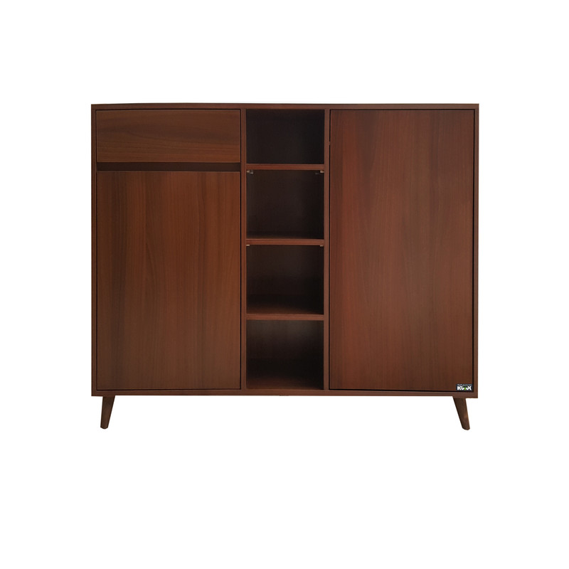 کنسول صنعت و هنر چوبی کوتوک دارای پایه های چوبی، دو باکس طبقه دار ، یک باکس چهار طبقه بدون درب ، یک کشو و صفحه به طول 130 سانتیمتر، فضای کافی را برای چیدن ظروف و آینه در اختیار شما قرار می دهد. جنس محصول ملامینه پویا میباشد.