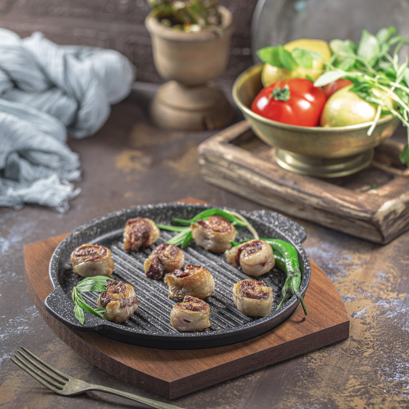 تابه گریل چدن مدل Fahita سایز 20 به همراه استند چوبی مبلمونسرا مدل 200719