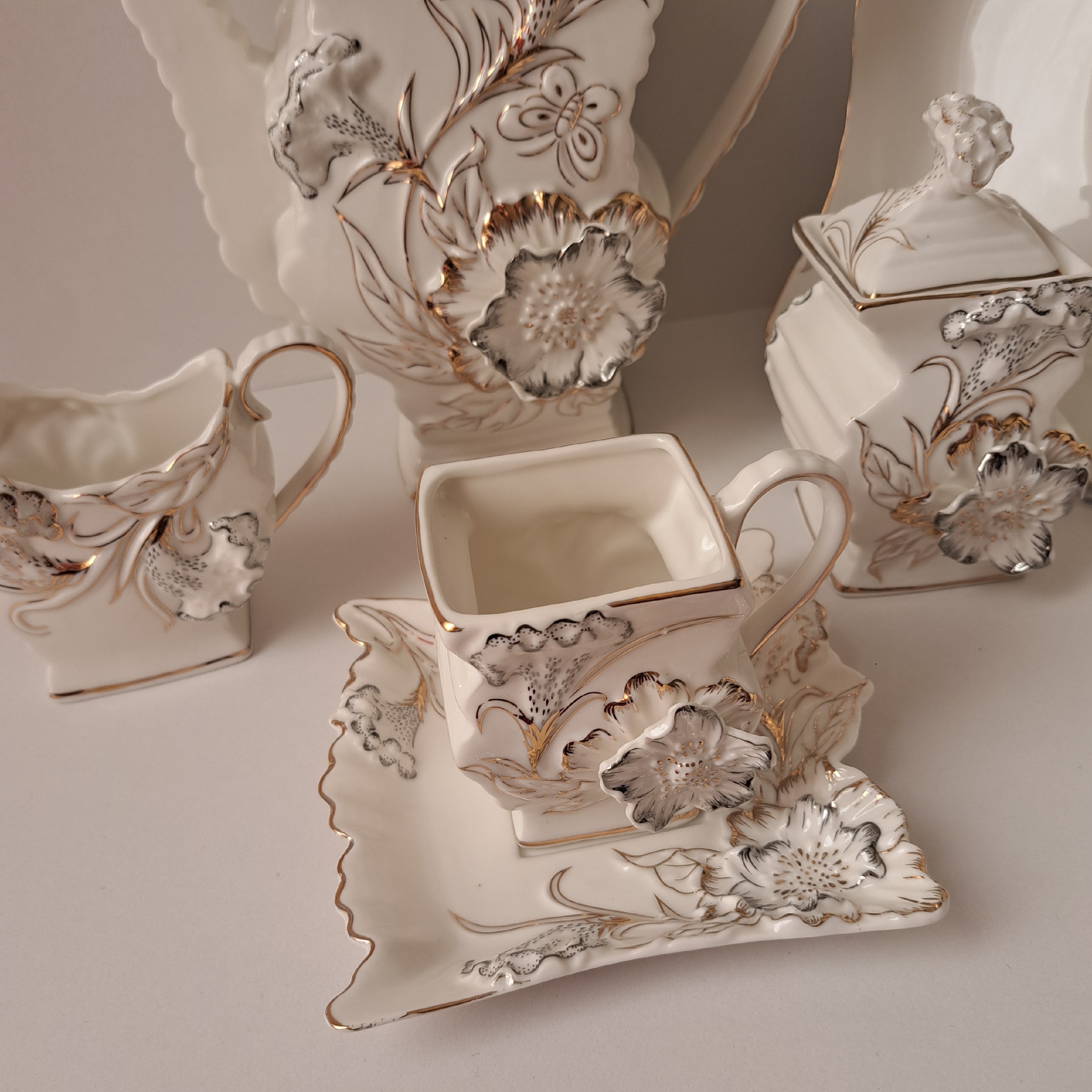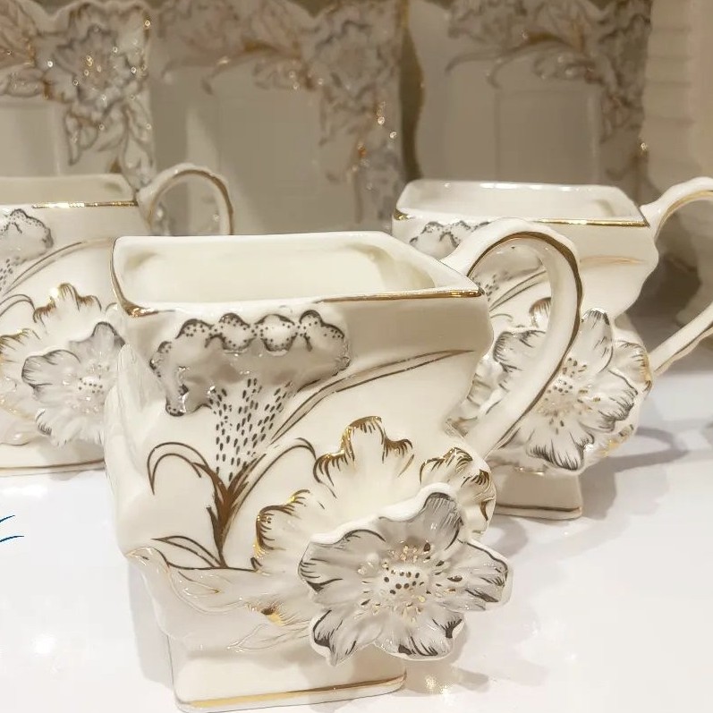 ست صبحانه خوری 24 پارچه گلبرجسته پشت و رو خاص و زیبا 6فنجان 6نعلبکی قوری قندان شکرریز 6 پیش دستی یک بشقاب بزرگ با جعبه بسیار شیک کادویی .