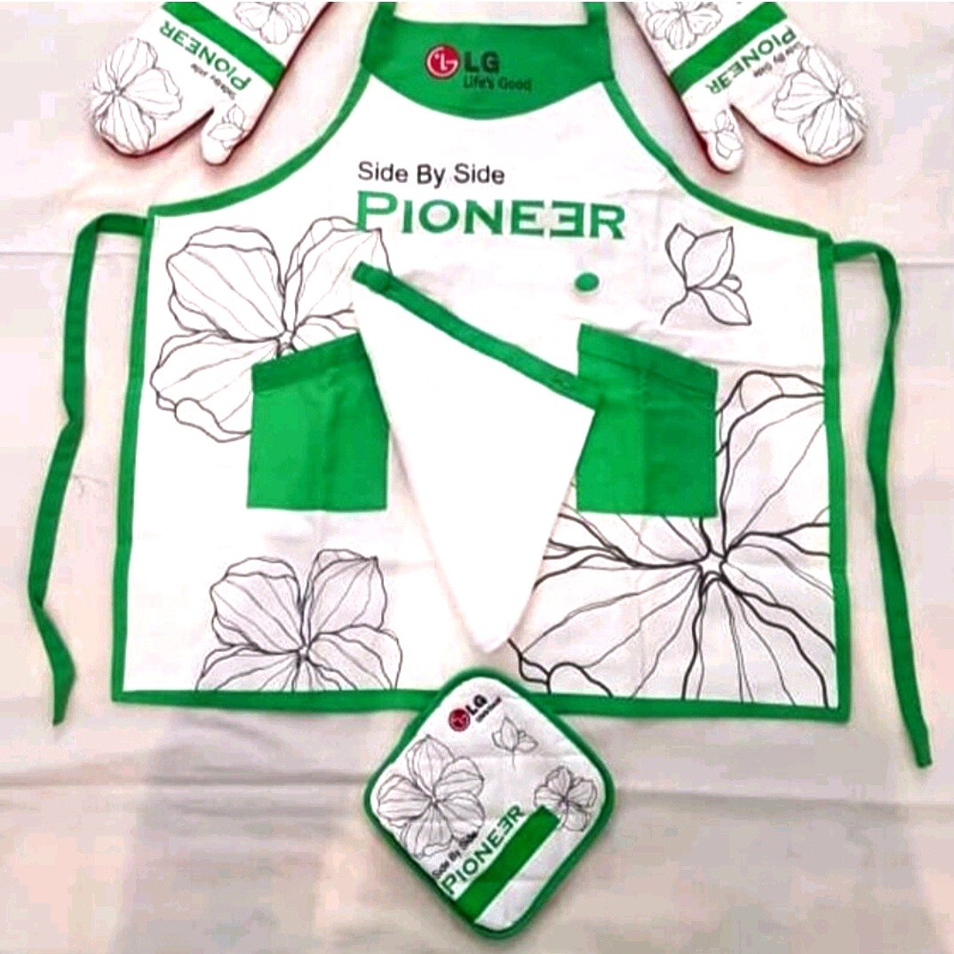 پیشبند نخی آشپزخانه الجی . دارای دستکش جفت برای استفاده از فر . دارای دستمال حوله ای . دارای دستگیره گیر قابلمه . راحتی استفاده و بسیار سبک . هیچ جا نمونش رو پیدا نمیکنین . 👈 انحصاری فروشگاه یکتا 👉