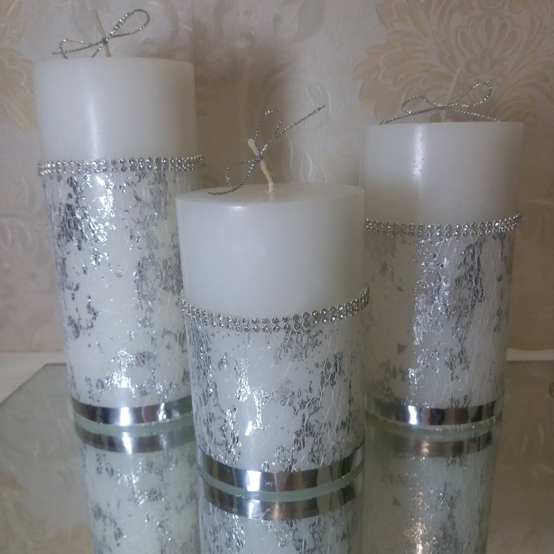 شمع استوانه سه تایی،در دو رنگ طلایی و نقره ای ودر قطر8 و وزن 2000گرم و ارتفاع 20 15 و 10 سانت مبلمونسرا مدل 284124