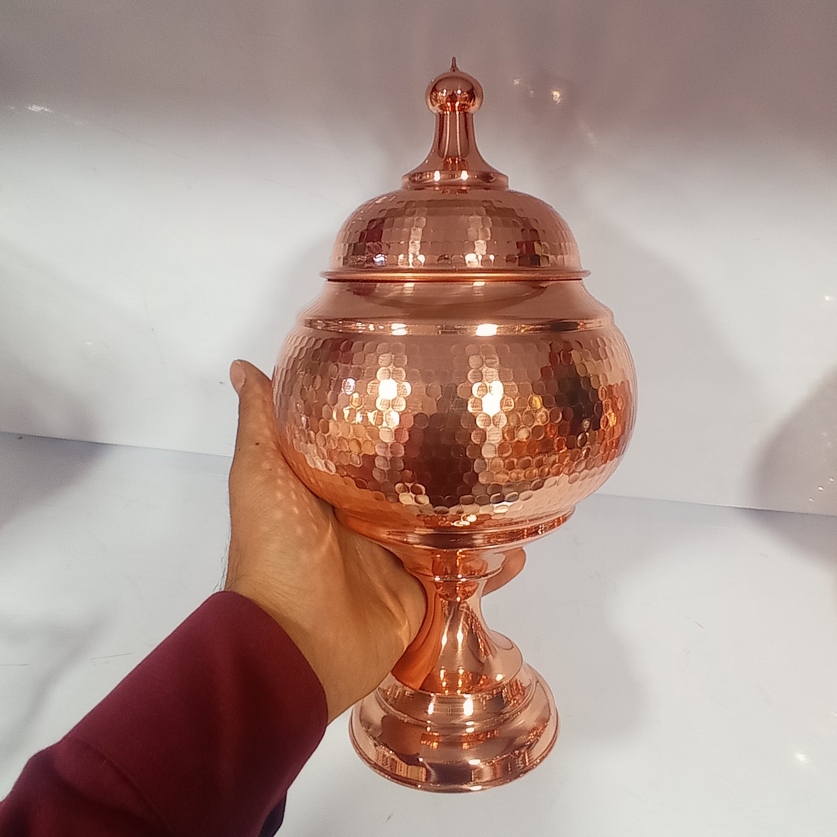 آجیل خوری مسی گنبدی خمره ای پایه دار نانو درجه یک فضلی زنجان مبلمونسرا مدل 265890