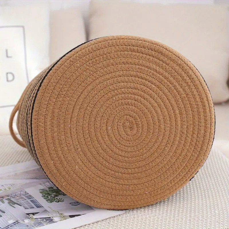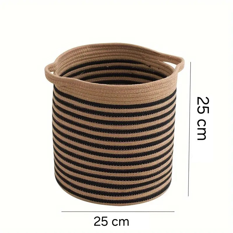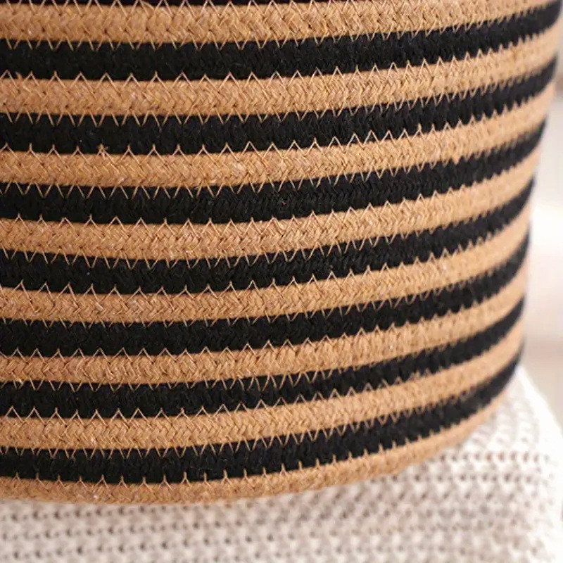 این سبد زیبا از ریسمان قیطان پنبه ای ساخته شده است و دوختی تمیز و م دارد. علاوه بر اینکه نرم است ایستایی بالایی دارد. این کالا استفاده های گوناگونی دارد از جمله: سطل زباله اتاق خواب ، سبد جوراب، سبدی برای اسباب بازیهای کوچک، کاور گلدان و ... کالا قابل شستشو در ماشین لباسشویی است.