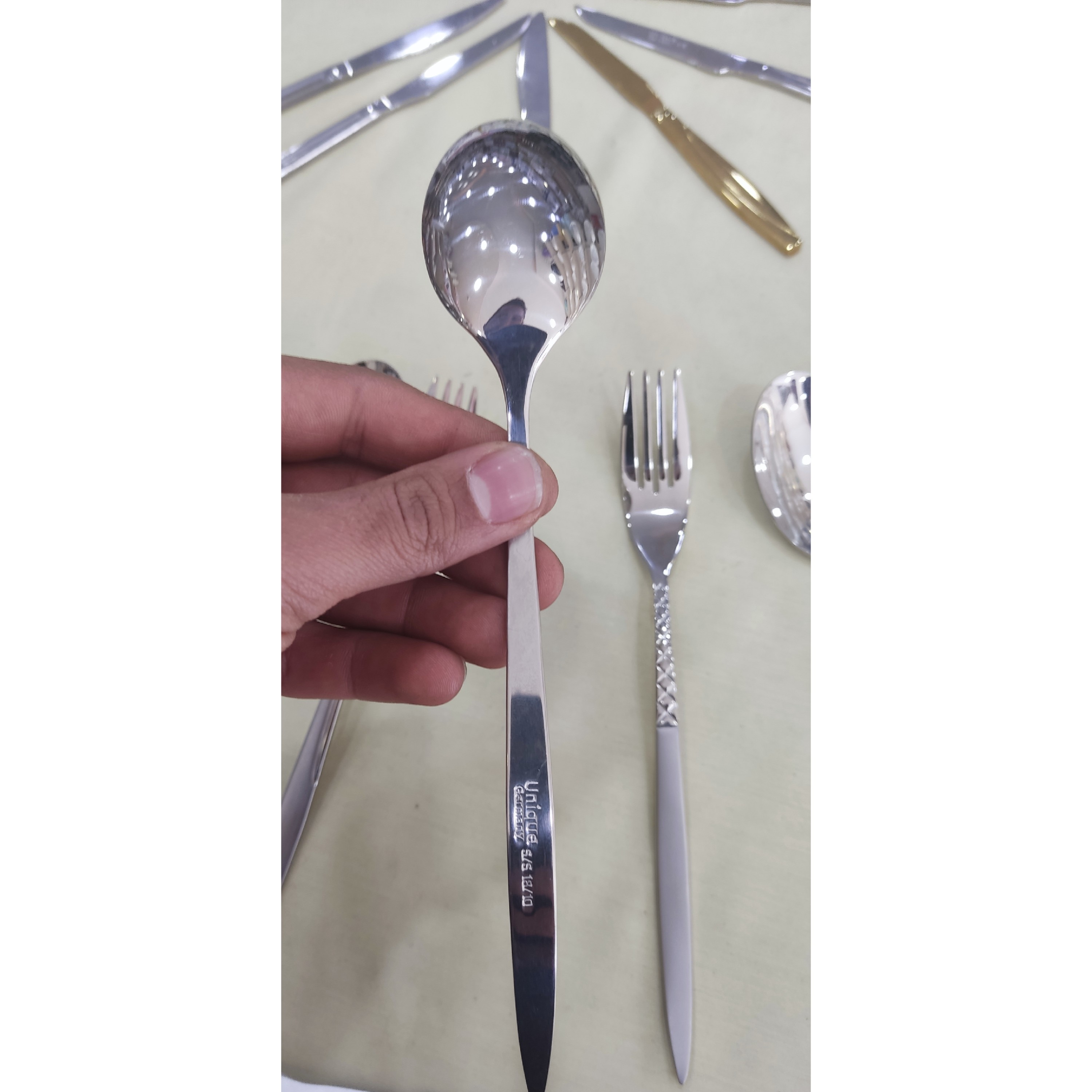 محصول شامل شش عدد قاشق و شش عدد چنگال می باشد استیل ضد زنگ مارک یونیک یدون سیاه شدگی استیل 18.10