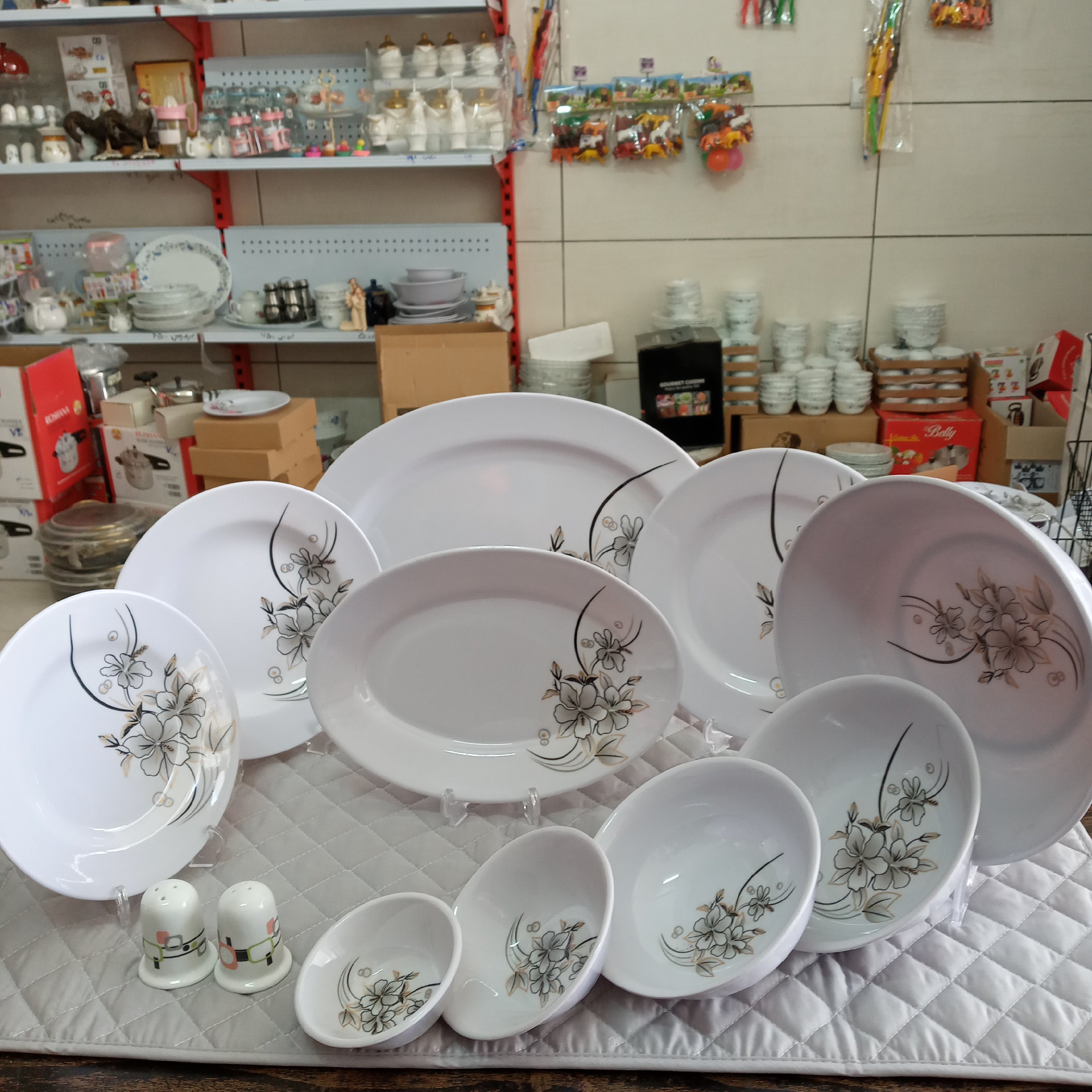 سرویس ۴۵ پارچه ملامین سپید یزد دارای استاندارد جنس خیلی عالی و قیمت مناسب محکم و بادوام و سبک و ساخته شده با مواد درجه یک از دو متری اگر پرت بشود باز هم نمیشکنه سرویس شامل ۶ تا برنج خوری متوسط ۶ تا خورشت خوری ۶ تا کاسه آبگوشت خوری یک نفره ۶ تا کاسه آبگوشت خوری دو نفره ۶ تا میوه خوری ۶ تا ماست خوری ۶ تا ترشی خوری ۱ عدد کاسه بزرگ سالاد ۱ عدد دیس کباب ۱ عدد دیس برنج مدل نشکن