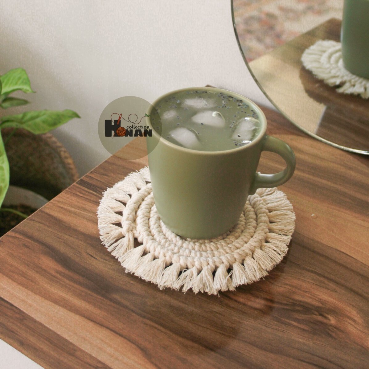 زیر لیوانی گرد مکرومه یه محصول کاربردی و قشنگ قابل سفارش در ابعاد بزرگتر