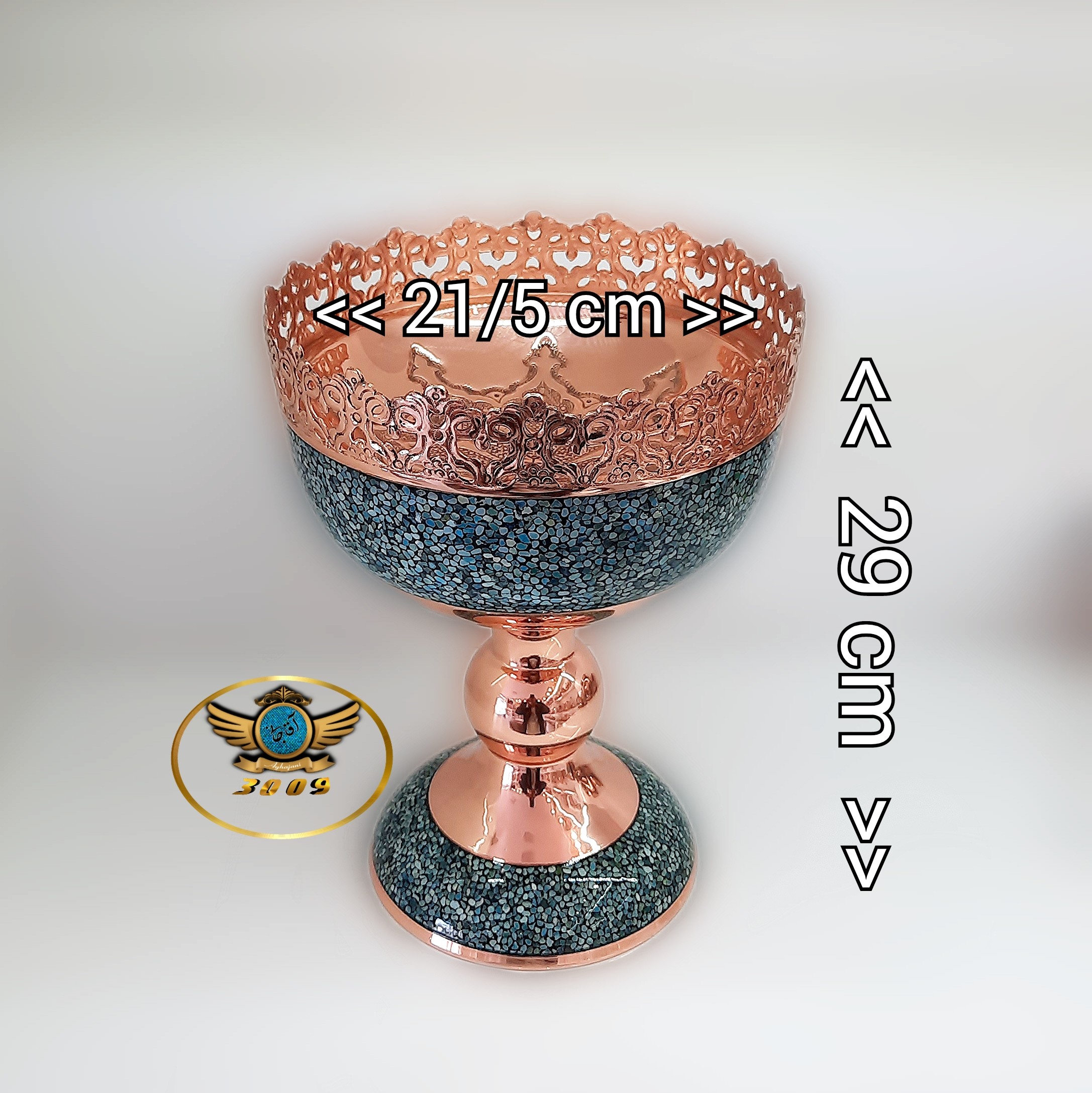 _آجیلخوری فیروزهکوب درخشش فیروزهی نیشابور بر پیکرهای از مس، زیبایی صدچندان به «آجیلخوری فیروزهکوب» آقاجانی بخشیده است. محصولی چشمنواز که زینتبخش خانهی شما است. شبکهبری ظریف و قلمزنی استادانه «آجیلخوری فیروزهکوب» را به ظرفی متفاوت جهت سرو انواع آجیل و تنقلات تبدیل کرده است. «آجیلخوری فیروزهکوب» آقاجانی در اندازه و ارتفاع متنوع و متفاوت مناسب با هر نوع سلیقه، کاربرد و چیدمان طراحی و ساخته شده است. ارتفاع «آجیلخوری فیروزهکوب» آقاجانی عبارت است از: ۹.۵، ۱۱.۵، ۱۴، ۱۶، ۲۹، ۳۳، ۴۳ و ۶۷ سانتیمتر می باشد. صنایعدستی «آقاجانی» با صدور ضمانتنامهی ۱۰ ساله برای محصولات «فیروزهکوبی» کیفیت و اصالت هنری آن را تایید و تضمین میکند. باتوجه به اینکه محصولات صنایعدستی آقاجانی، کاملا اصیل و دستساز هستند، احتمال اختلاف ارتفاع تا حداکثر ۳ سانتیمتر وجود دارد. _«آجیلخوری فیروزهکوب» آقاجانی یکی از محبوبترین محصولات صنایعدستی آقاجانی است. تمامی مراحل ساخت آجیلخوری فیروزهکوب، به دست هنرمندان خوشذوق و زبردست اصفهانی انجام میشود. اگر به دنبال ظرفی مناسب جهت پذیرایی از مهمانان عزیزتان هستید، «آجیلخوری فیروزهکوب» آقاجانی بهترین گزینه است. انتخابی که نشان از خوشسلیقگی شما دارد. علاوه بر کاربردی بودن، زیبایی «آجیلخوری فیروزهکوب» به دکوراسیون و چیدمان منزل شما، جلوهای دیگر میبخشد. از سوی دیگر «آجیلخوری فیروزهکوب» آقاجانی به لحاظ ارزش مادی و معنوی قابلتوجهی که دارد. گزینهی خوبی به عنوان کادو و هدیه در مناسبتهای مختلف مانند روز مادر، روز معلم، عروسی و جهیزیه میباشد. _هنر فیروزهکوبی مس از فلزات ارزشمندی است که به دلیل خواص و ویژگیهای خاص و منحصر به فرد یکی از باکیفیتترین فلزات تزیینی است که زیبایی خاصی به خانه شما میبخشد. سنگ فیروزه نیز یکی از محبوبترین سنگهای قدیمی است که دارای انواع مختلفی است و بر طبق انواعی که دارد، ارزشهای مختلفی به آن داده میشود. فیروزه سمبلی از آرامش، بخشش و مهربانی است. هنر فیروزهکوبی از زیباترین صنایعدستی اصفهان بهشمار میرود. «فیروزهکوبی» هنری است که با نشاندن سنگهای فیروزه بر سطح درخشان ظروف مسی، اثری دلنشین میآفریند که نه تنها در ایران، بلکه در جهان به ظرافت و زیبایی شناخته میشود. در فیروزهکوبی، تولید و پردازش زیرساخت از اهمیت ویژهای برخوردار است. هنرمندان خوشذوق صنایعدستی آقاجانی، ورقههای مسی را در قالب ظروف متفاوت همچون گلدان، آینه و شمعدان، قندان، شکلاتخوری، شیرینیخوری، آجیلخوری، سنگاب،کشکول، دخل، تنگ و … شکل میدهند. در الصاق سنگهای فیروزه بر سطح ظروف مسی، خرده سنگها را برحسب اندازه به اصطلاح، دانهبندی میکنند تا در ساخت هر محصول، از قطعات فیروزهی متناسب با سطح کار استفاده شود. هنرمندان محصولات فیروزهکوب «آقاجانی» را به ظرافت همنشینی سنگهای فیروزه می شناسند. پوشش محصولات فیروزهکوب با ۵ لایه پلیاستر مرغوب از معتبرترین برندهای جهانی، به عنوان لایهای برای محافظت از محصولات در برابر آسیبهای احتمالی صورت میگیرد که شفافیت و درخشش فوقالعادهای به محصولات بخشیده و آنرا چشم نوازتر میکند. _شرایط نگهداری از آجیلخوری فیروزهکوب برند آقاجانی: هنرمندان سطح محصولات فیروزهکوب «آقاجانی» با بهترین نوع پلیاستر پوشش داده اند، اما شما برای حفظ زیبایی و درخشش این محصولات موارد زیر را رعایت نمایید: ظروف فیروزهکوبی را در معرض تابش مستقیم نور خورشید و رطوبت قرار ندهید. برای تمیز کردن ظروف فیروزهکوبی از یک دستمال خشک استفاده کنید.